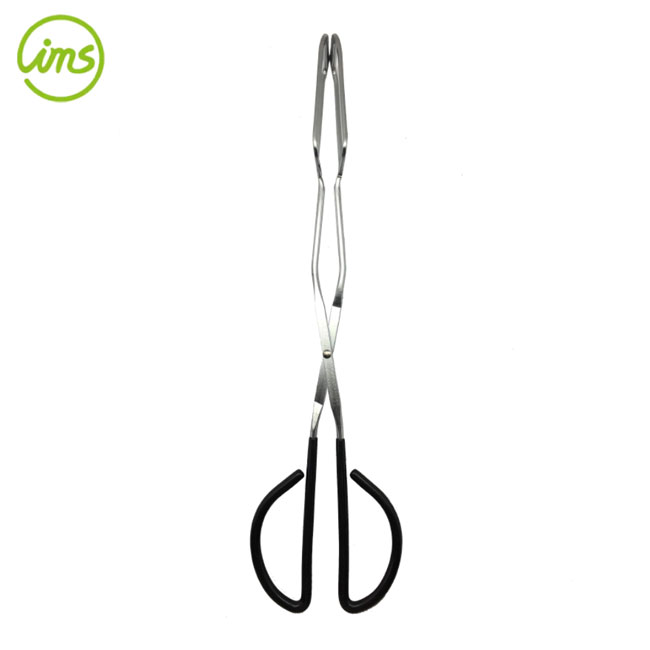 15" Stainless Steel Long Scissor Tongs with Black PVC Handle – Made in Taiwan