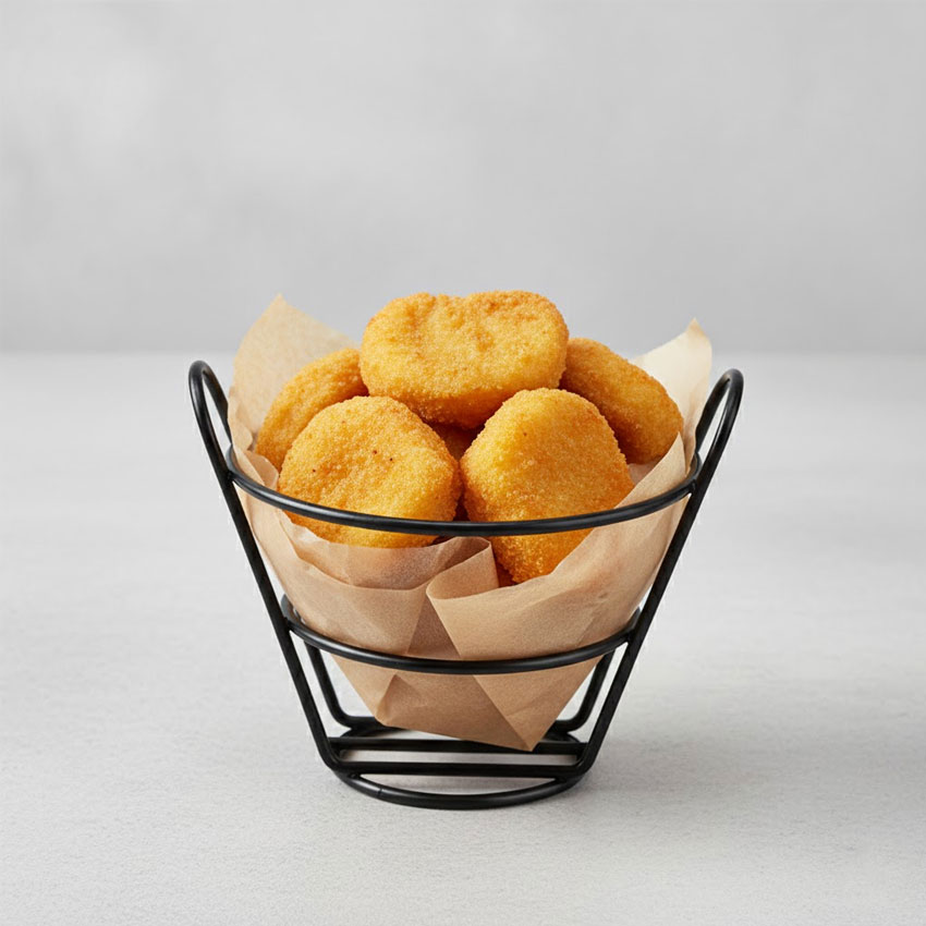 Made from durable iron wire with a sleek black coating, this collection combines industrial aesthetics with everyday practicality. The open-wire structure allows proper airflow, helping fried foods stay crisp while enhancing visual appeal on the table or display counter.