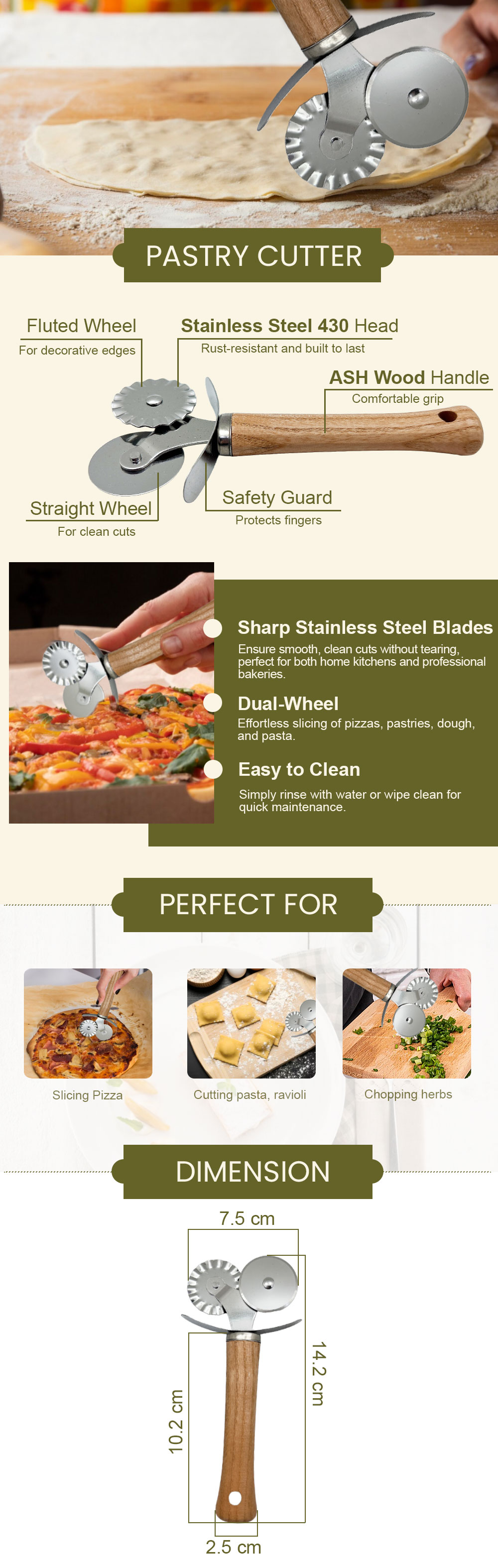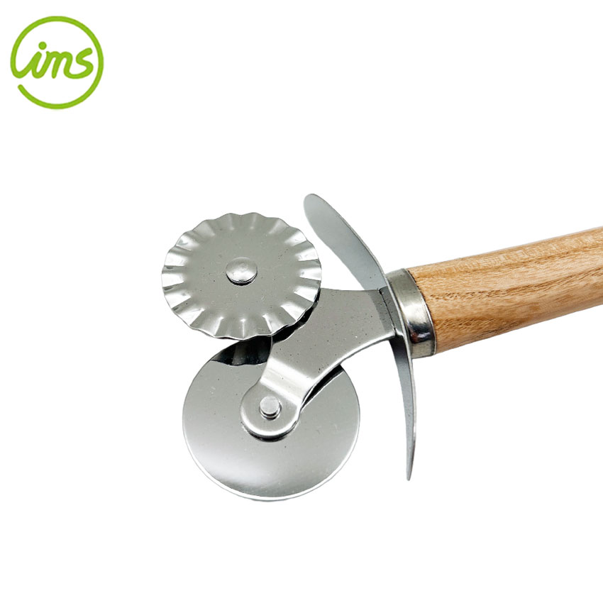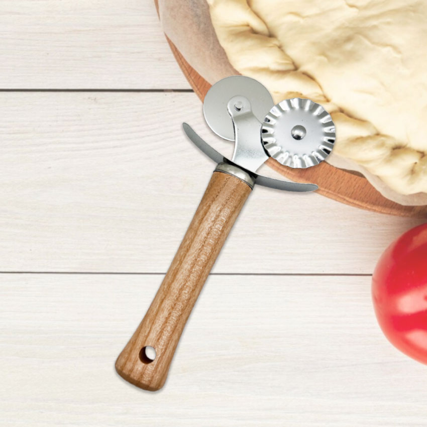 قطاعة المعجنات والبيتزا 2 في 1 بمقبض خشبي