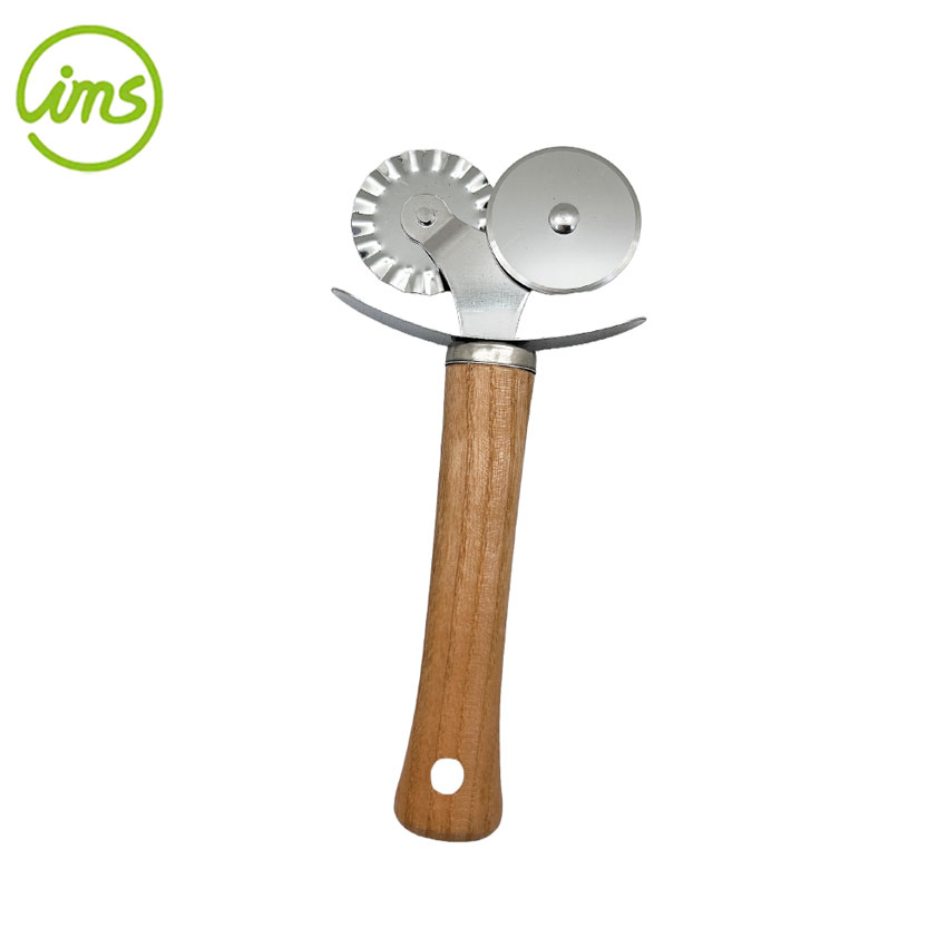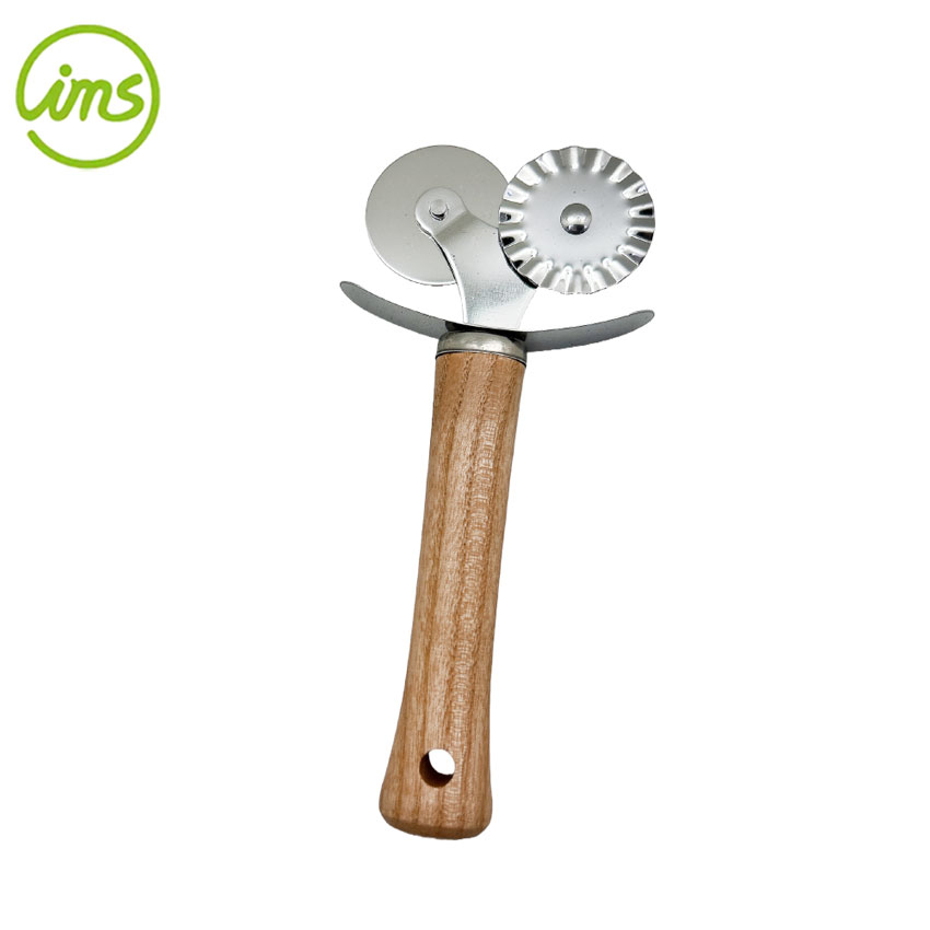 عجلة تقطيع رافيولي البيتزا بمقبض خشبي من خشب الرماد