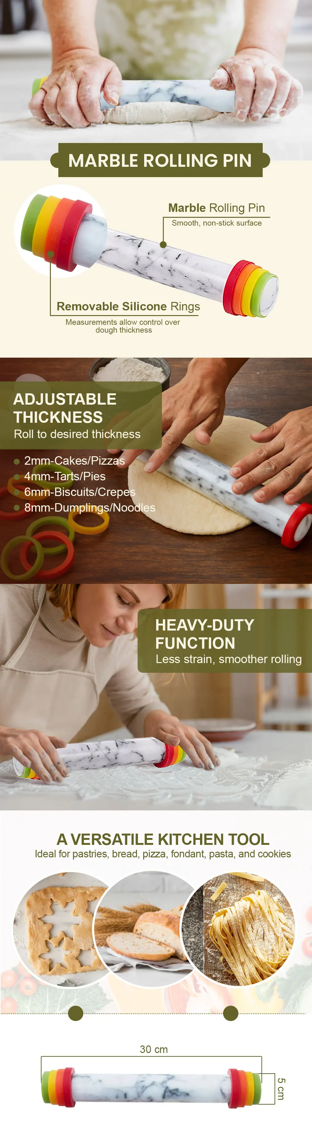 Perfect for rolling pastry dough, pizza bases, pie crusts, fondant, pasta, noodles, cookies, and bread dough. Suitable for everyday baking, professional pastry work, and precise dough preparation.