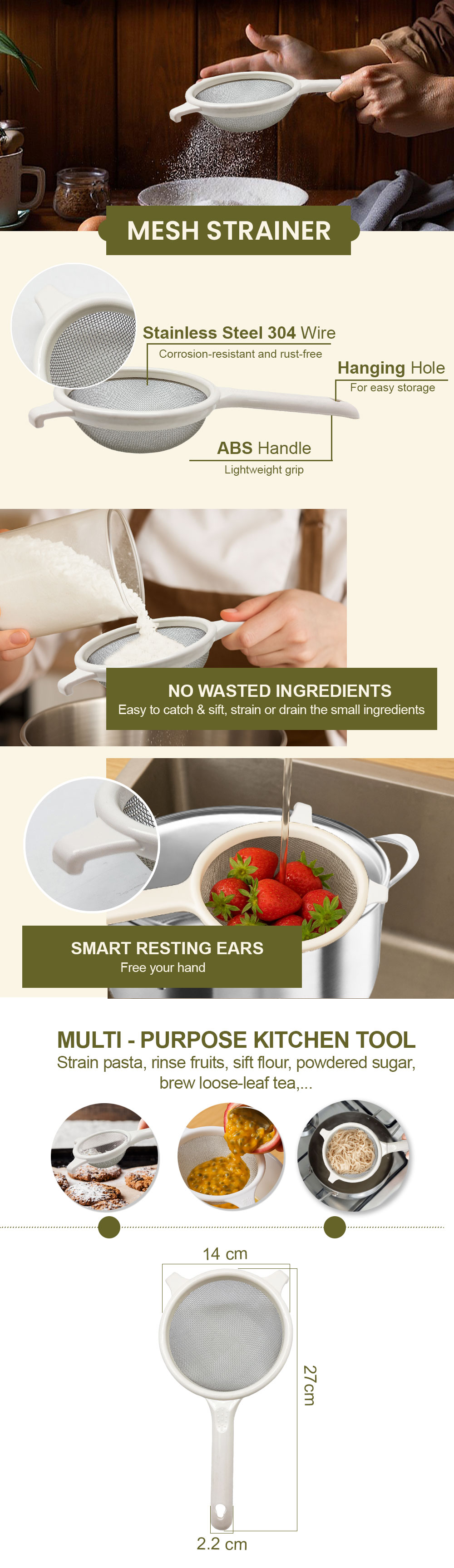 مصفاة شبكية من الفولاذ المقاوم للصدأ مقاس 3 بوصات، بمقبض ABS - tw