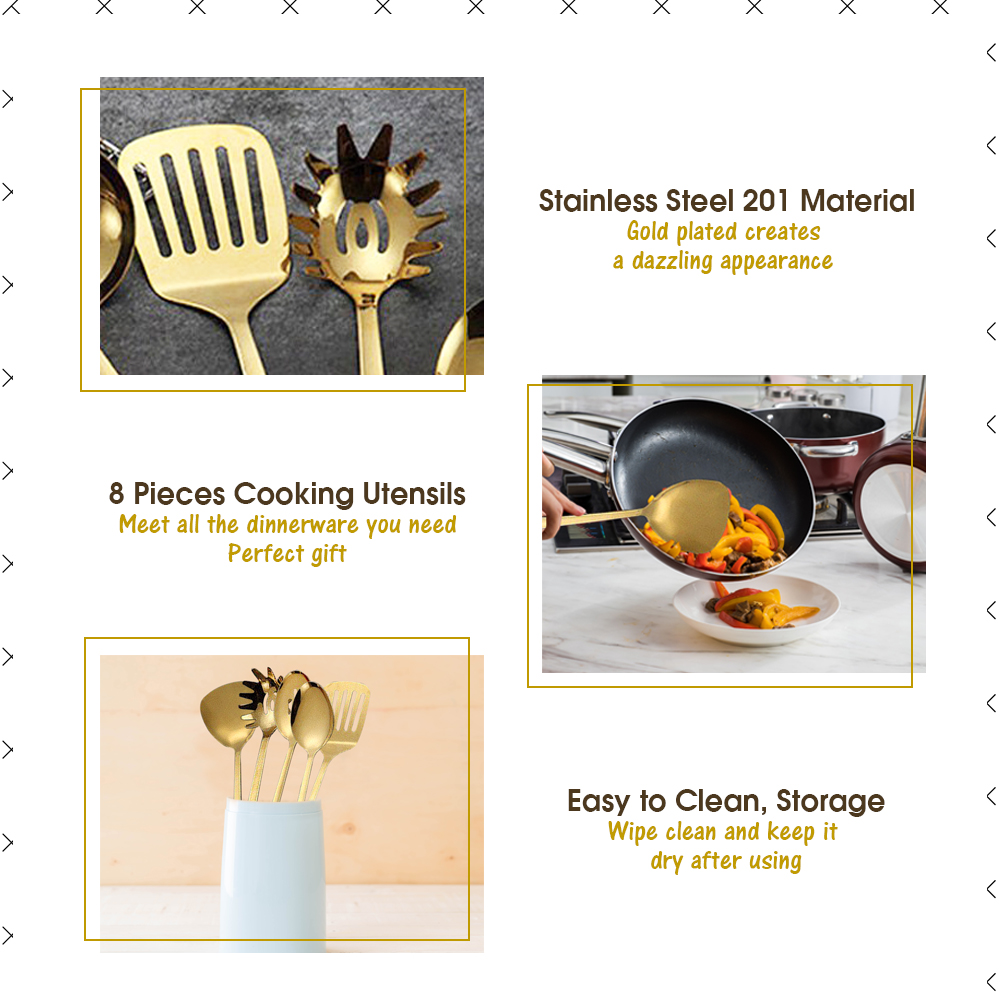 مجموعة أدوات مطبخ مطلية بالذهب مكونة من 8 قطع