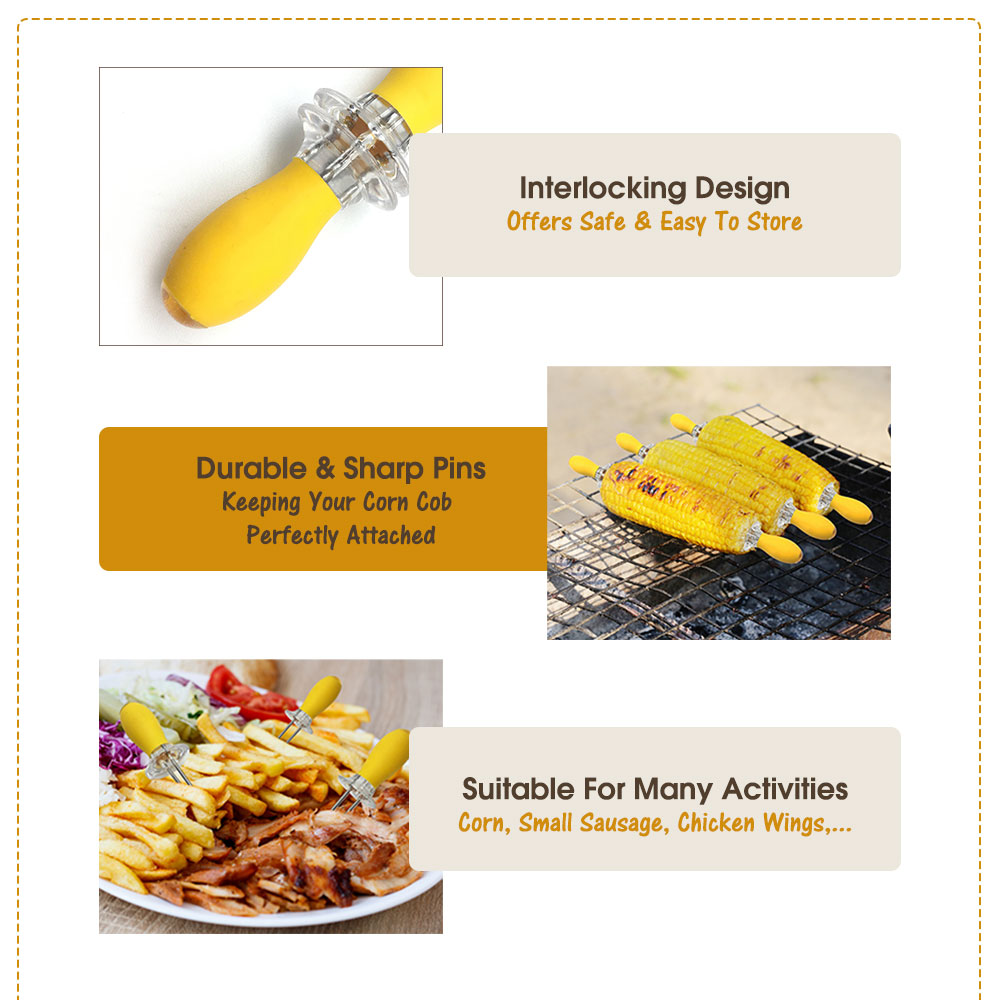 مجموعة أسياخ بمقبض خشبي مكونة من 4 قطع