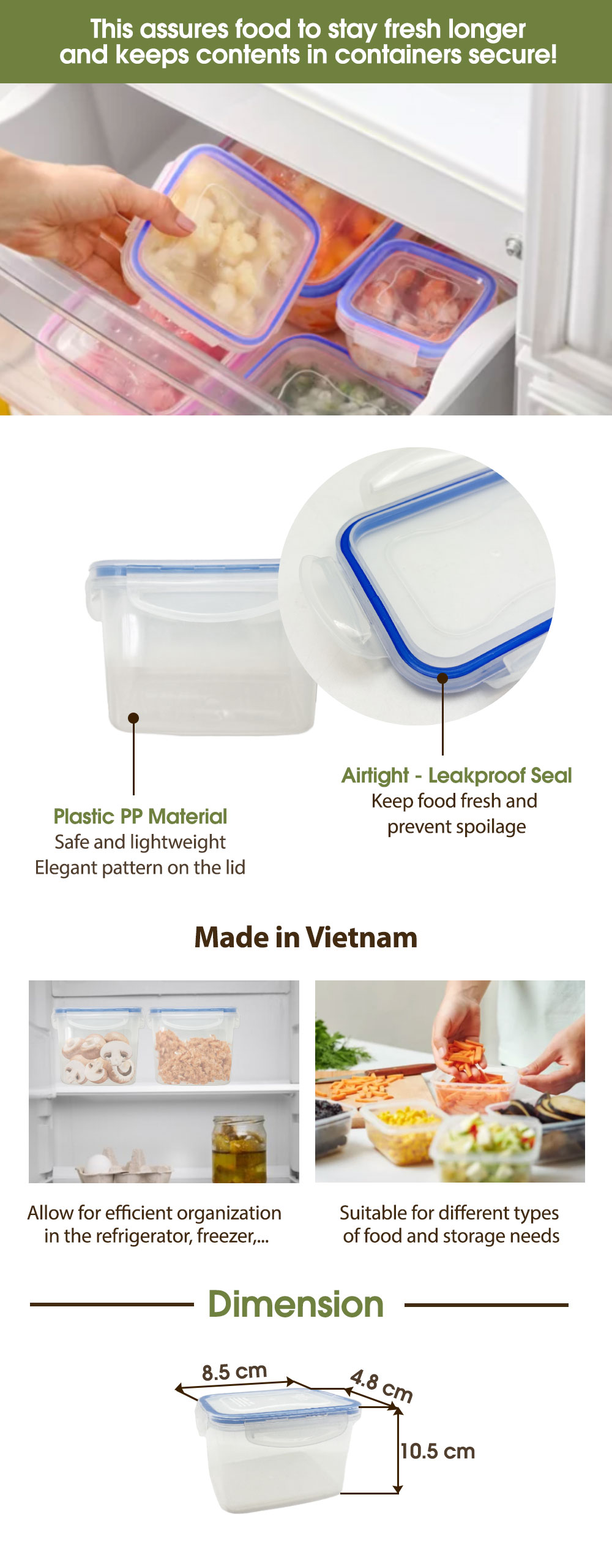 نوع من حاويات التخزين مصمم لتوفير إغلاق آمن ومحكم للحفاظ على الطعام طازجًا لفترة طويلة. هذه هي الحاويات المثالية لإعداد الوجبات أو تخزين بقايا الطعام، ومثالية للعمل والمدرسة والمنزل.
