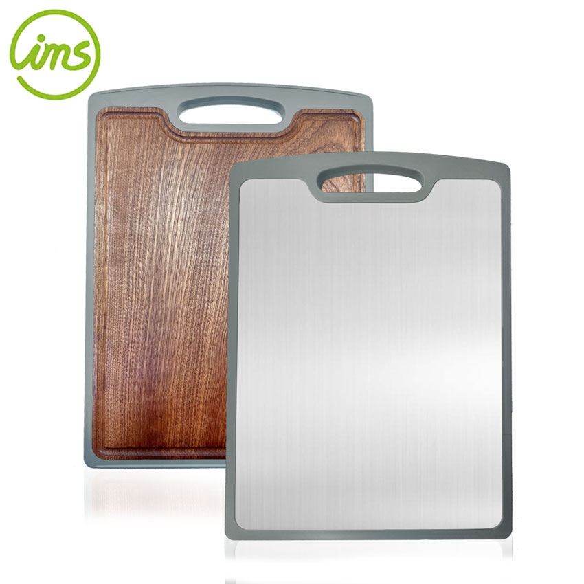 17"x12" double-sided stainless steel & sandalwood cutting board | heavy-duty & antibacterial