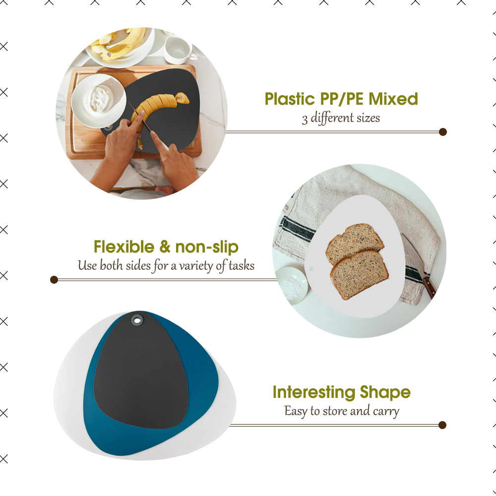 مجموعة من 3 ألواح تقطيع بلاستيكية غير قابلة للانزلاق على شكل حصاة