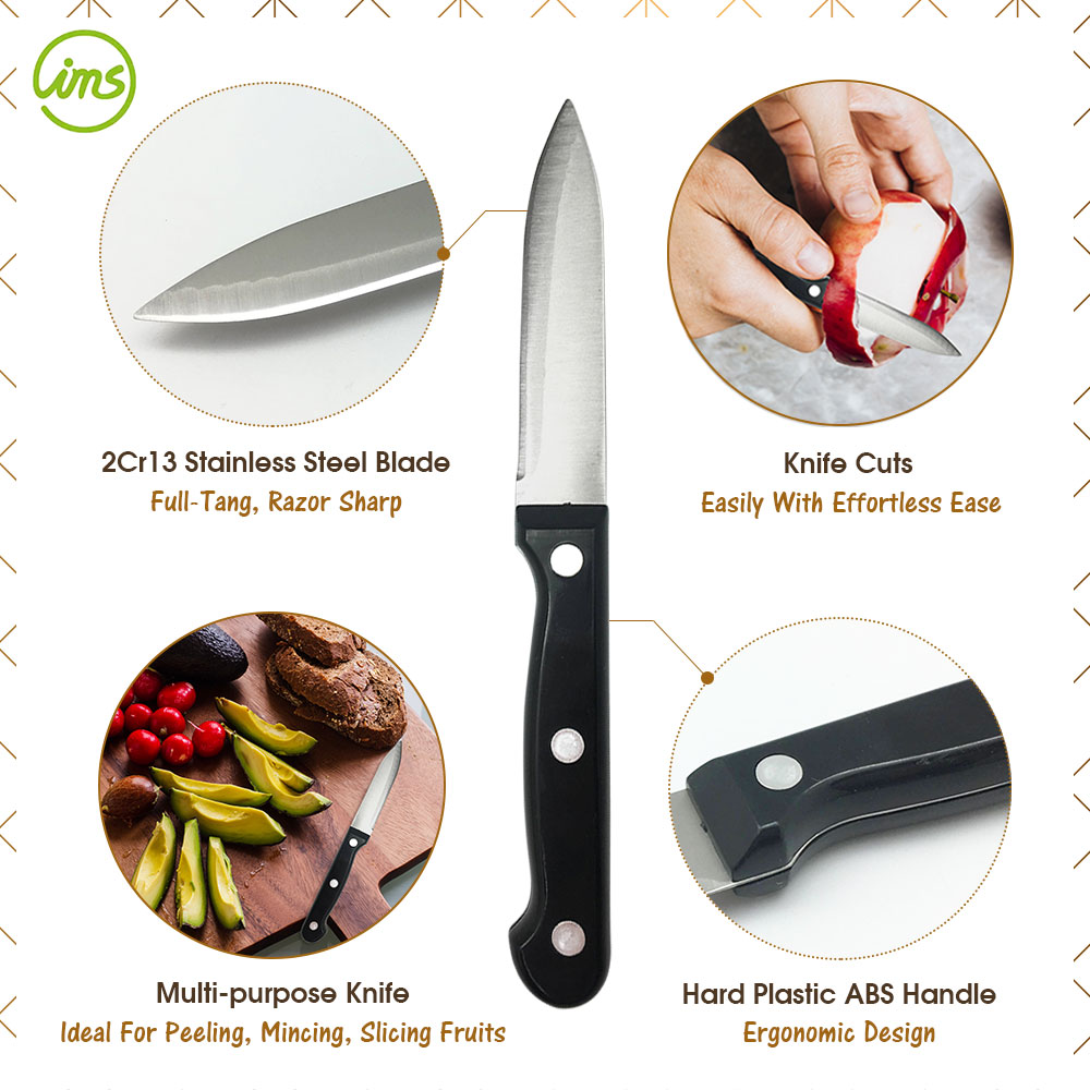 سكين تقطيع فاكهة تانغ بالكامل مقاس 3.5 سم، مقبض باكليت