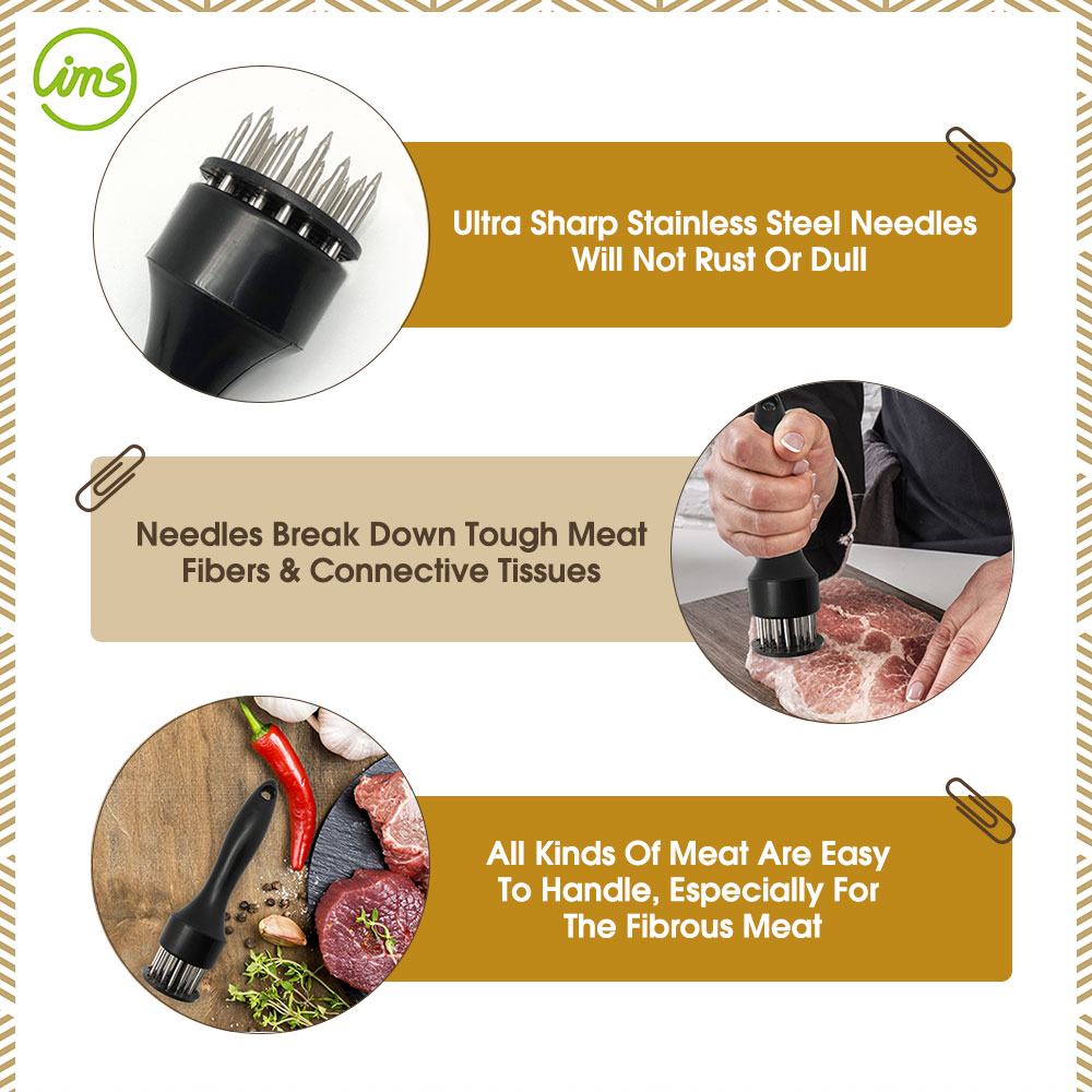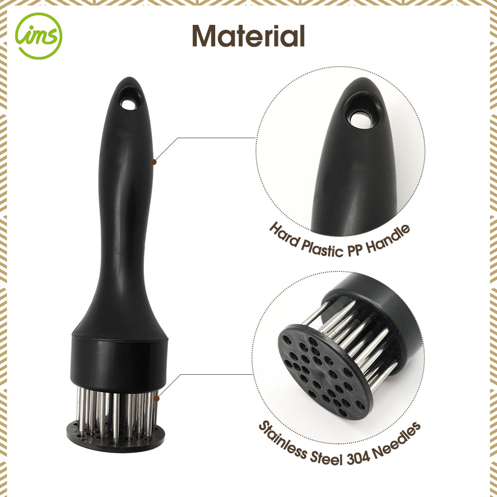 مع 21 شفرة توفر طريقة جديدة وفعالة لتطرية اللحوم. تم تصنيع الإبر الفعالة والحادة من الفولاذ المقاوم للصدأ.