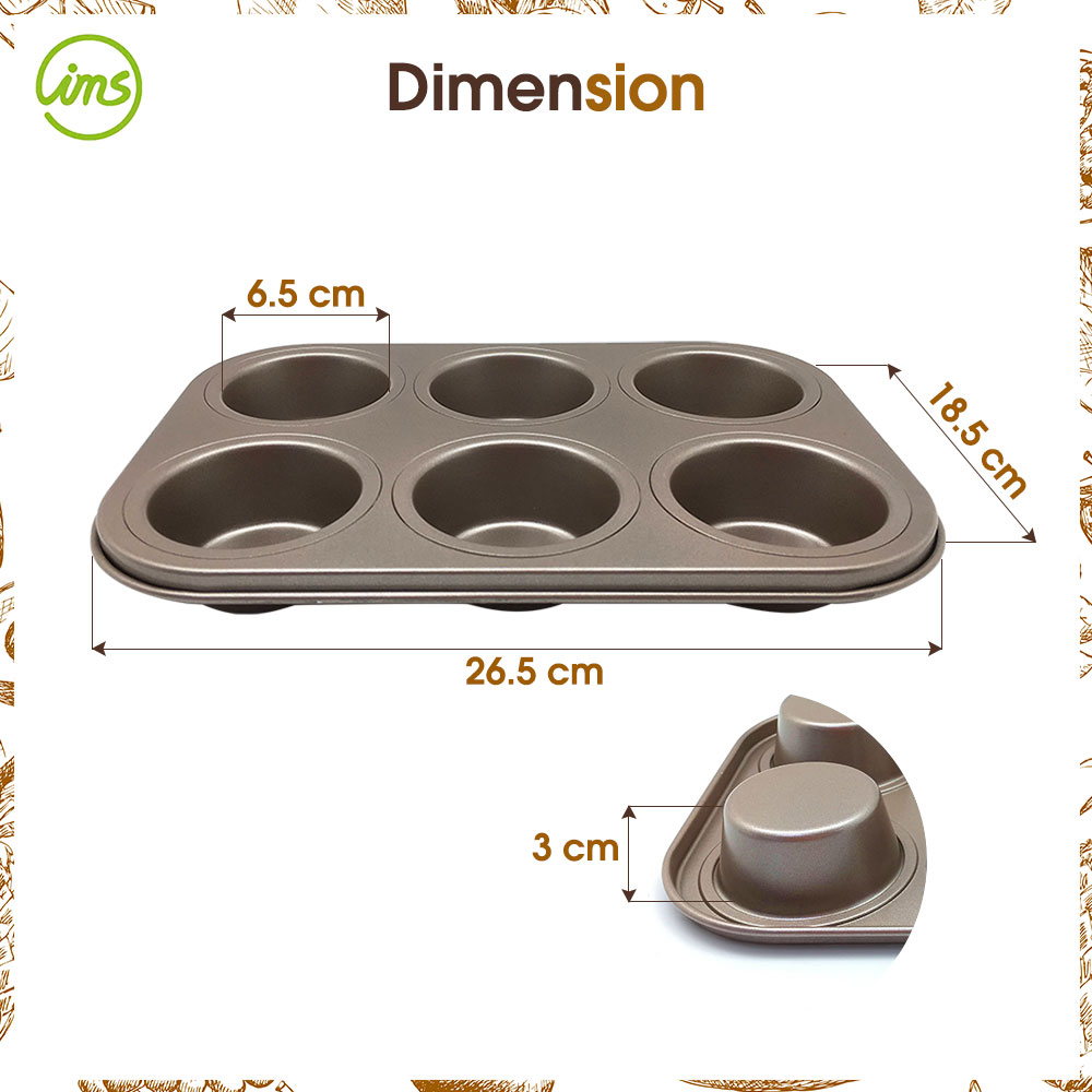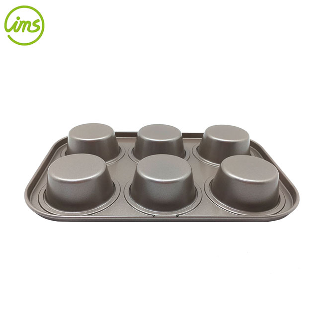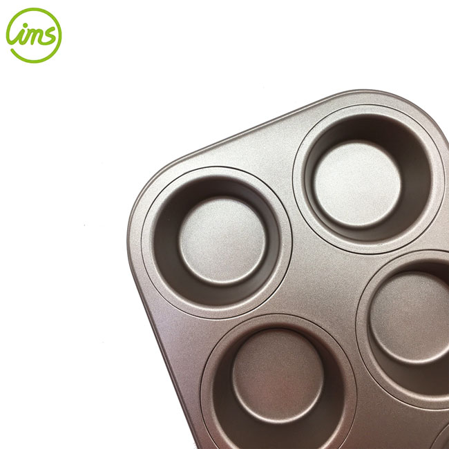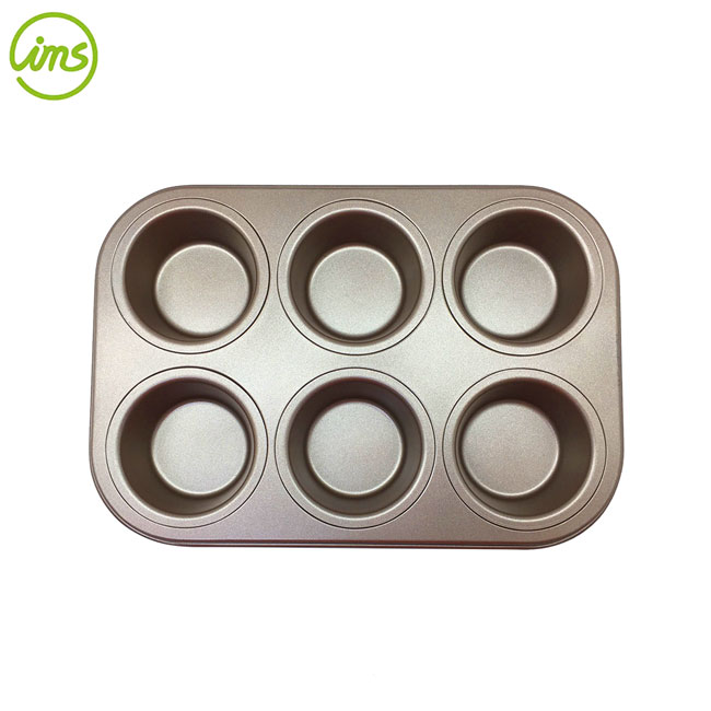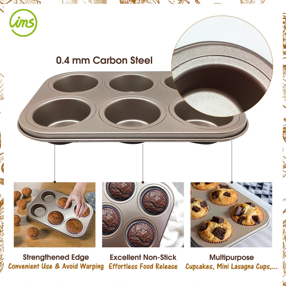 قالب كيك مافن غير لاصق بلون الشمبانيا الذهبي مكون من 6 تجاويف