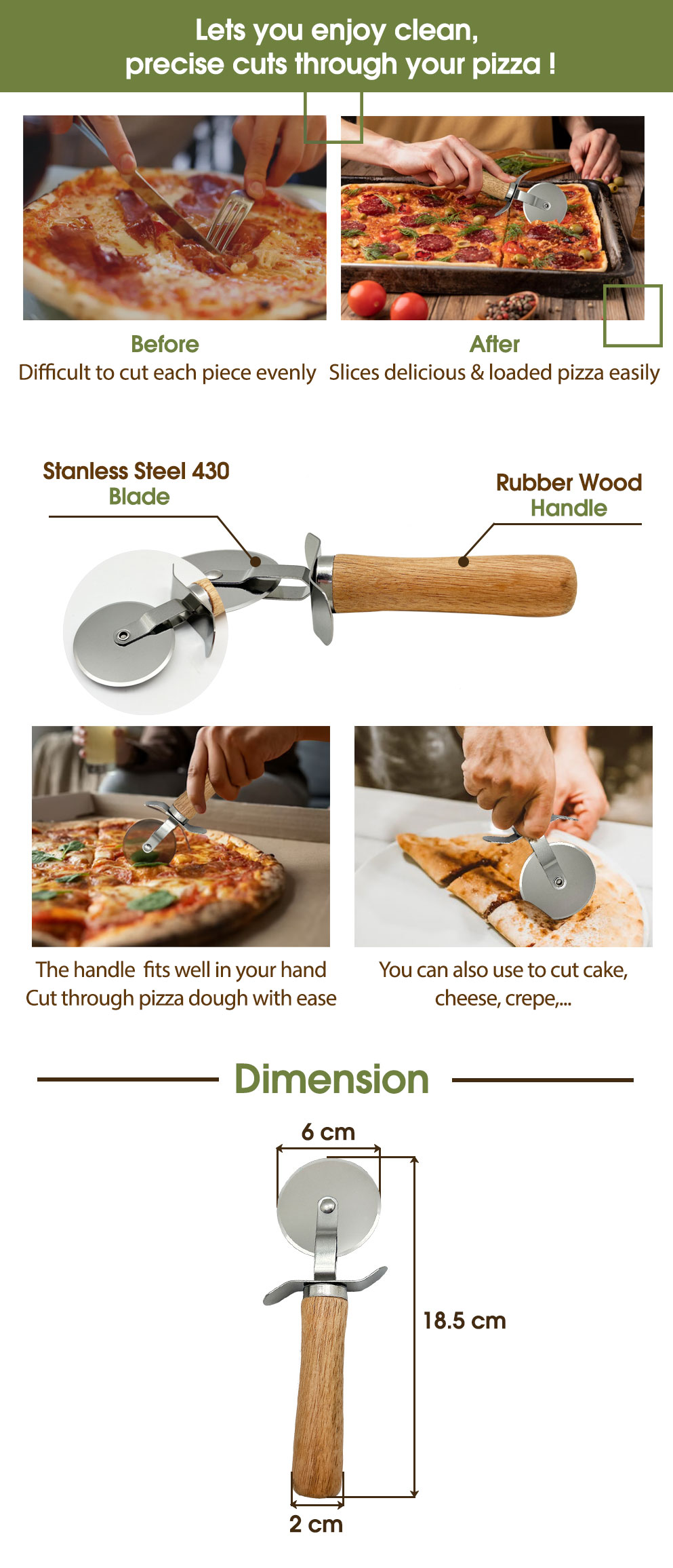 عجلة تقطيع البيتزا بمقبض مطاطي خشبي