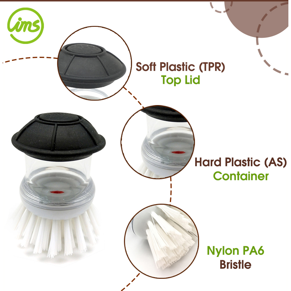 Handflächenbürste mit Nylonborsten, Seifen- und Reinigungsmitteldosierung