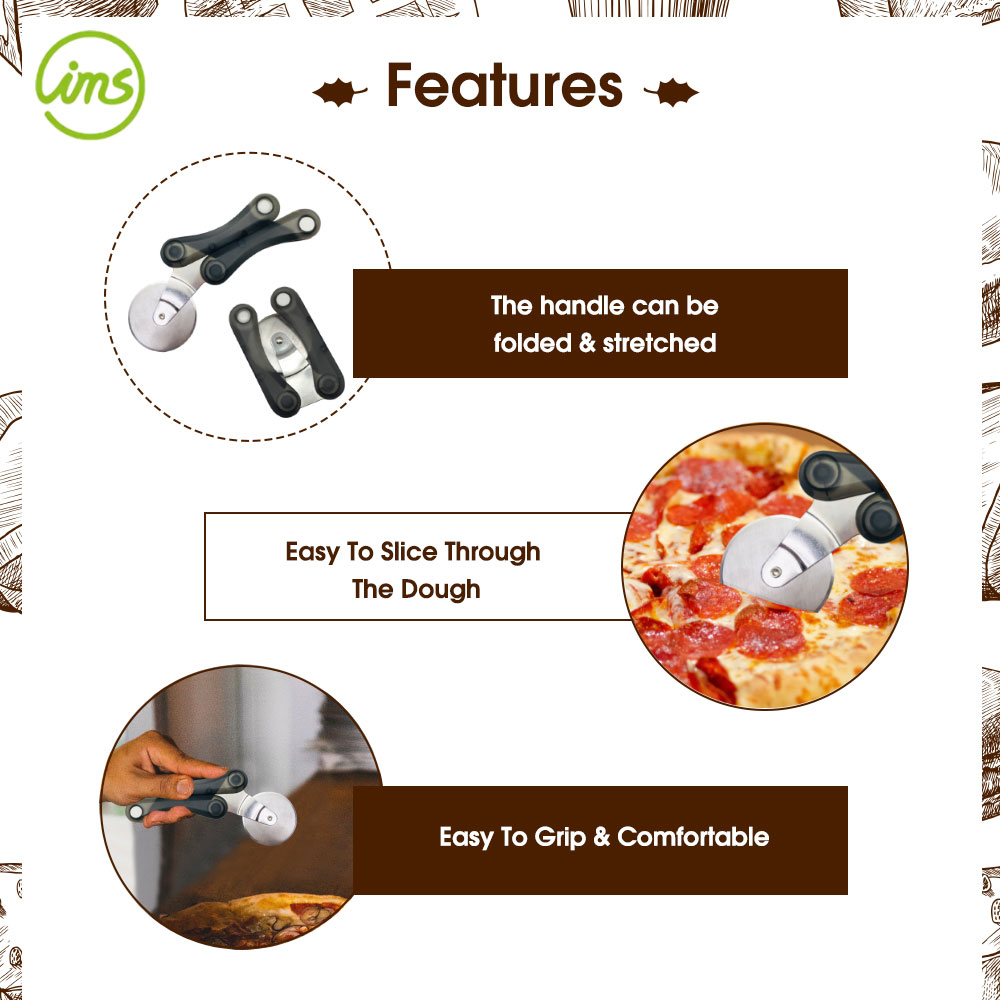 Einziehbares Pizzaschneiderrad mit Kunststoffgriff