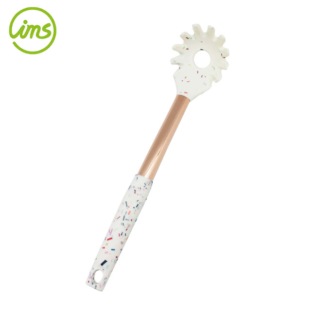 Servieren Sie Spaghetti und andere lange Nudeln mühelos mit diesem Nudelgreifer, der über einen langlebigen PBT-Kopf und einen ergonomischen TPR-Griff über einem stabilen PP-Griff verfügt.