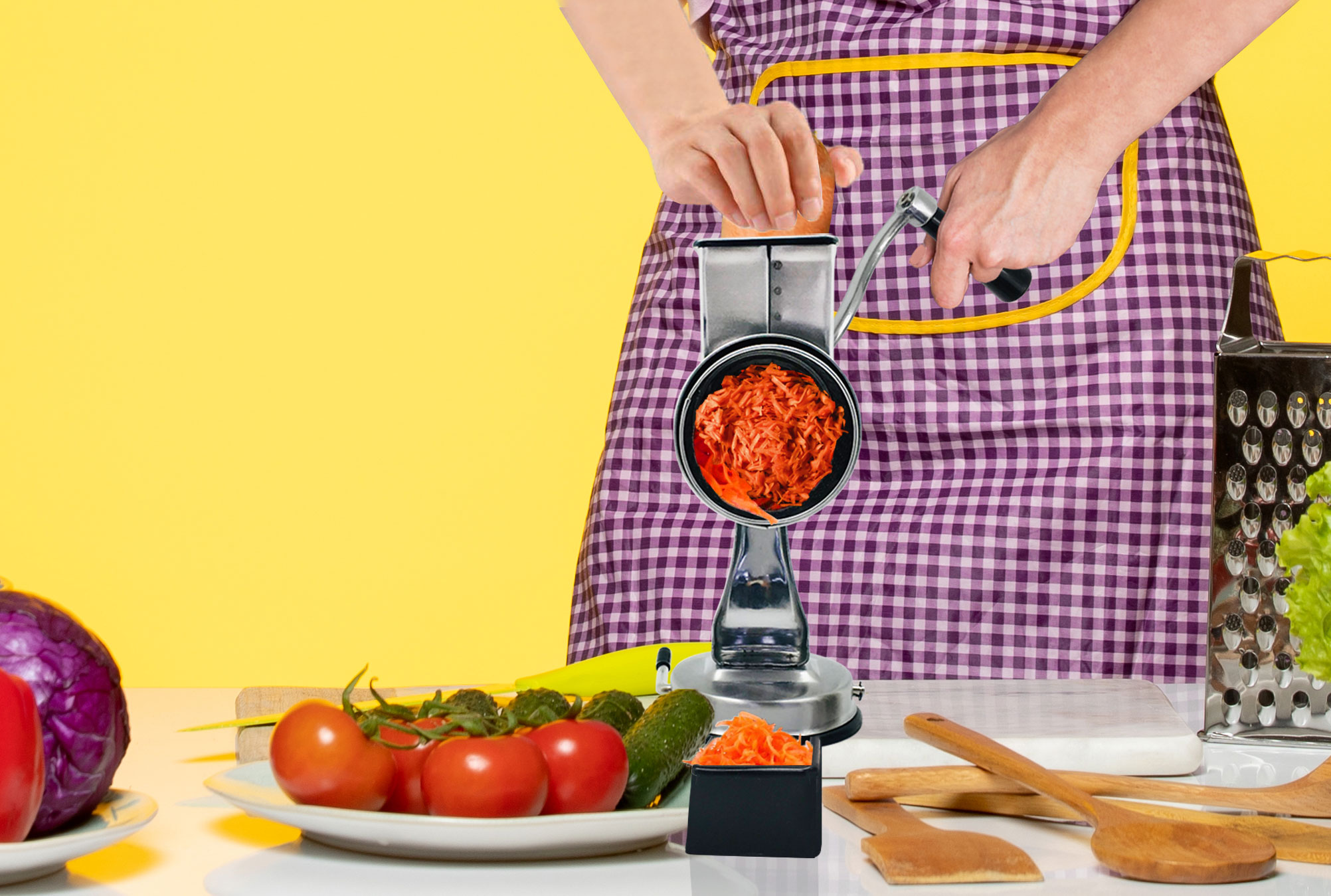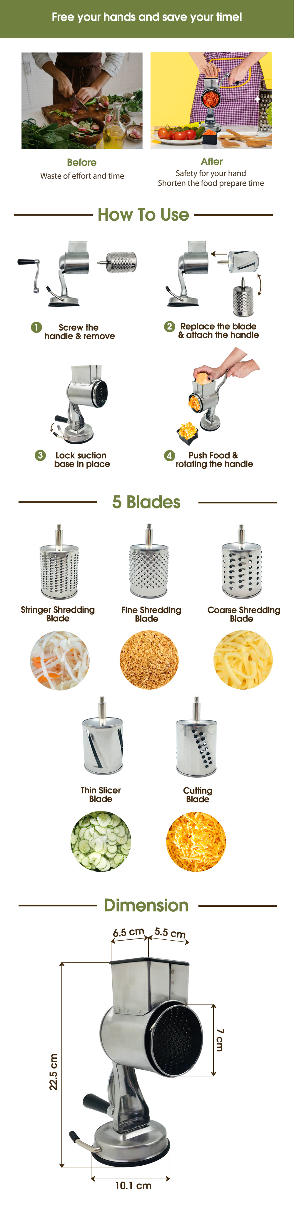 Manuelle rotierende Käsereibe mit 5 Trommelklingen