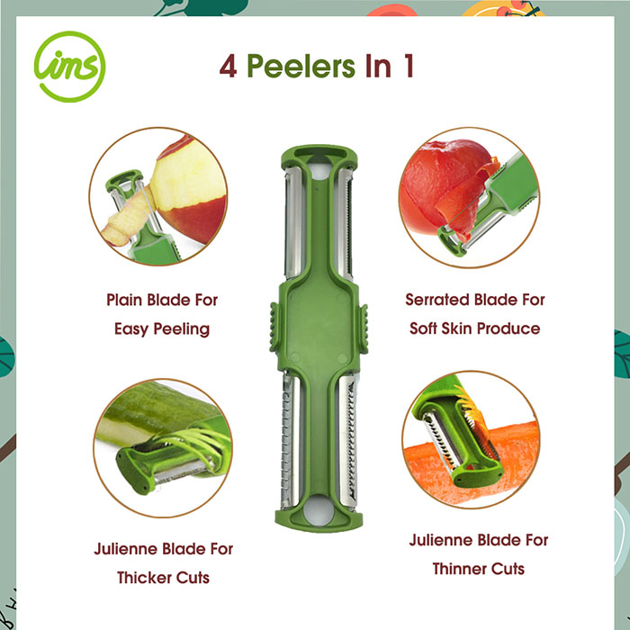 A 4-in-1 peeler is a kitchen tool that combines four different blades in one compact design.