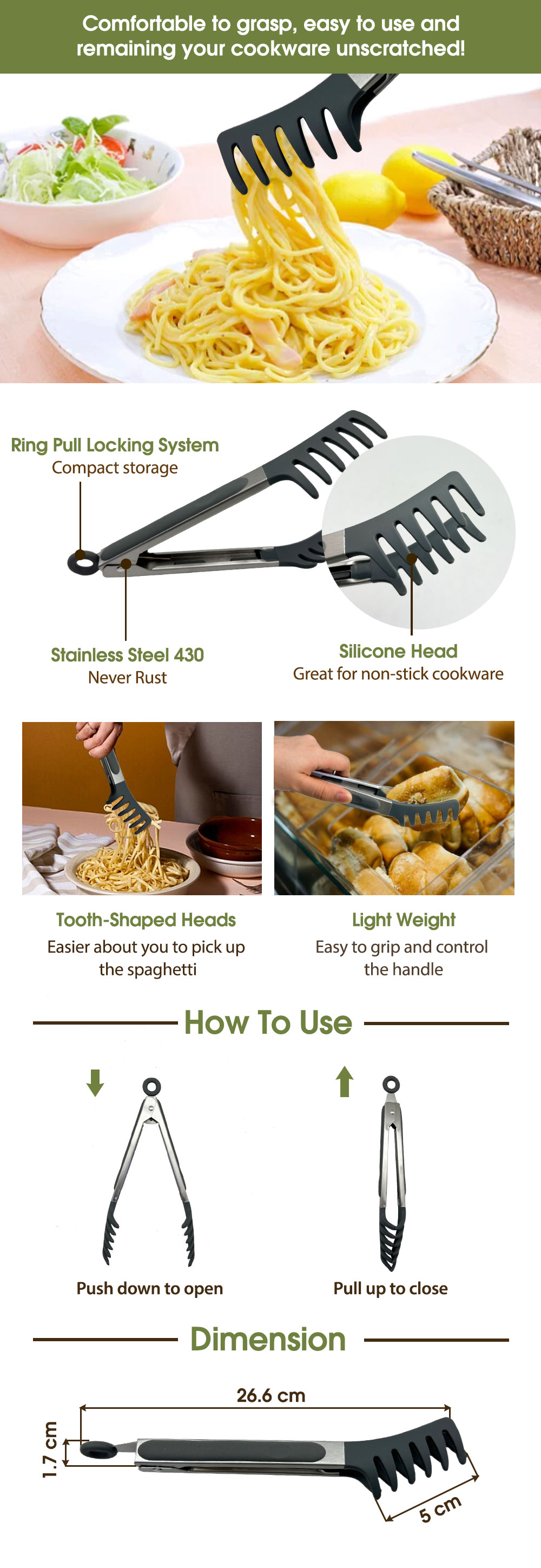 Pastazange aus Silikon mit Feststellfunktion für Spaghetti aus Edelstahl