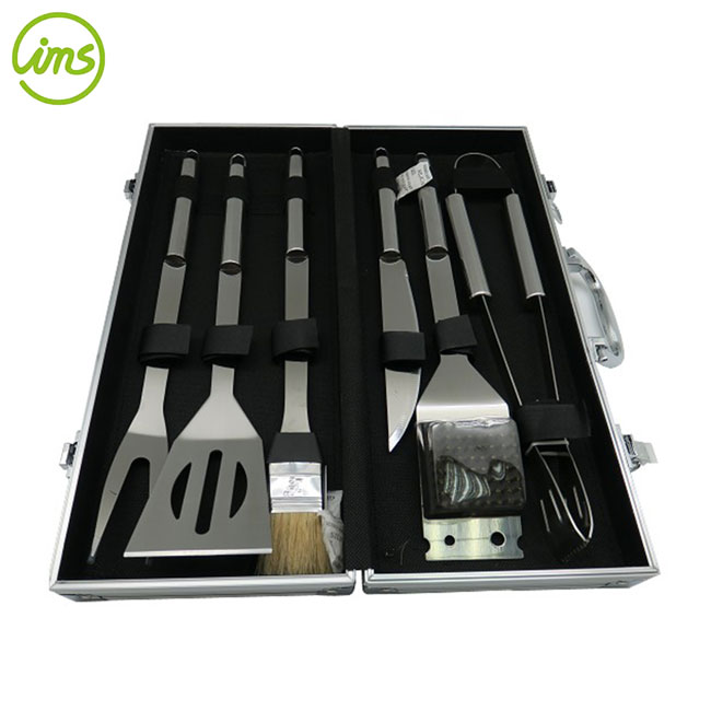 7-piece stainless steel bbq tool set with aluminum case