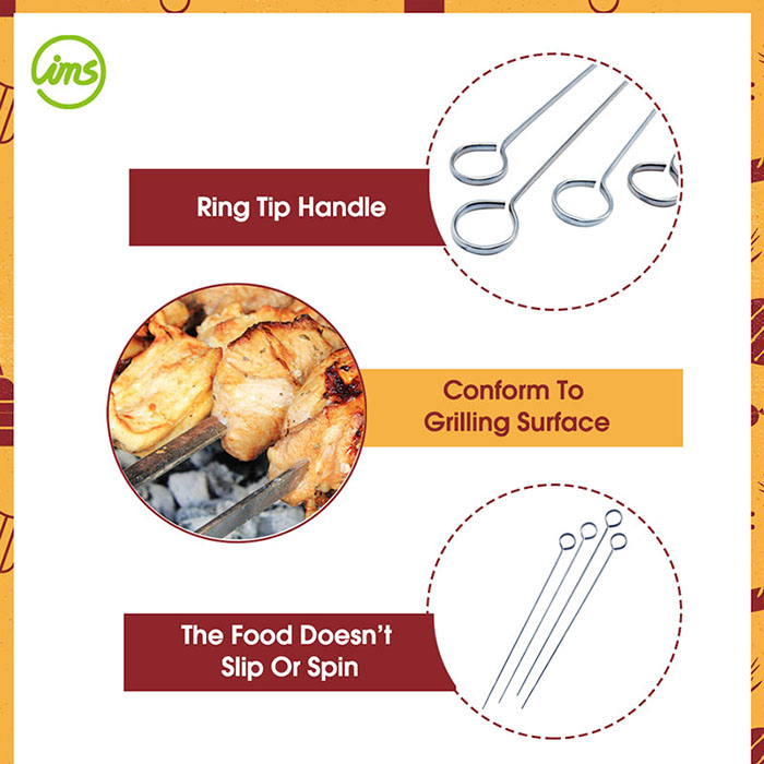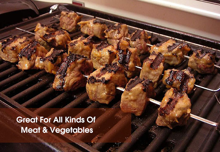Die Verwendung von Spießen erleichtert die Handhabung der Speisen auf dem Grill. Sie können die Spieße mit einer Zange oder einem Spatel wenden, ohne dass die Gefahr besteht, dass die Speisen auseinanderfallen oder durch die Roste rutschen.