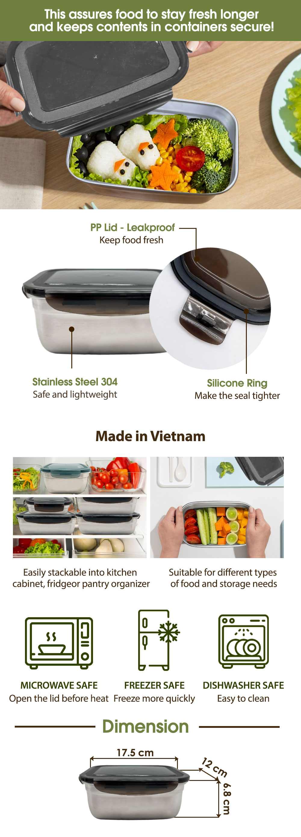 Hergestellt in Vietnam, 2200 ml Lebensmittelbehälter mit luftdichtem Deckel