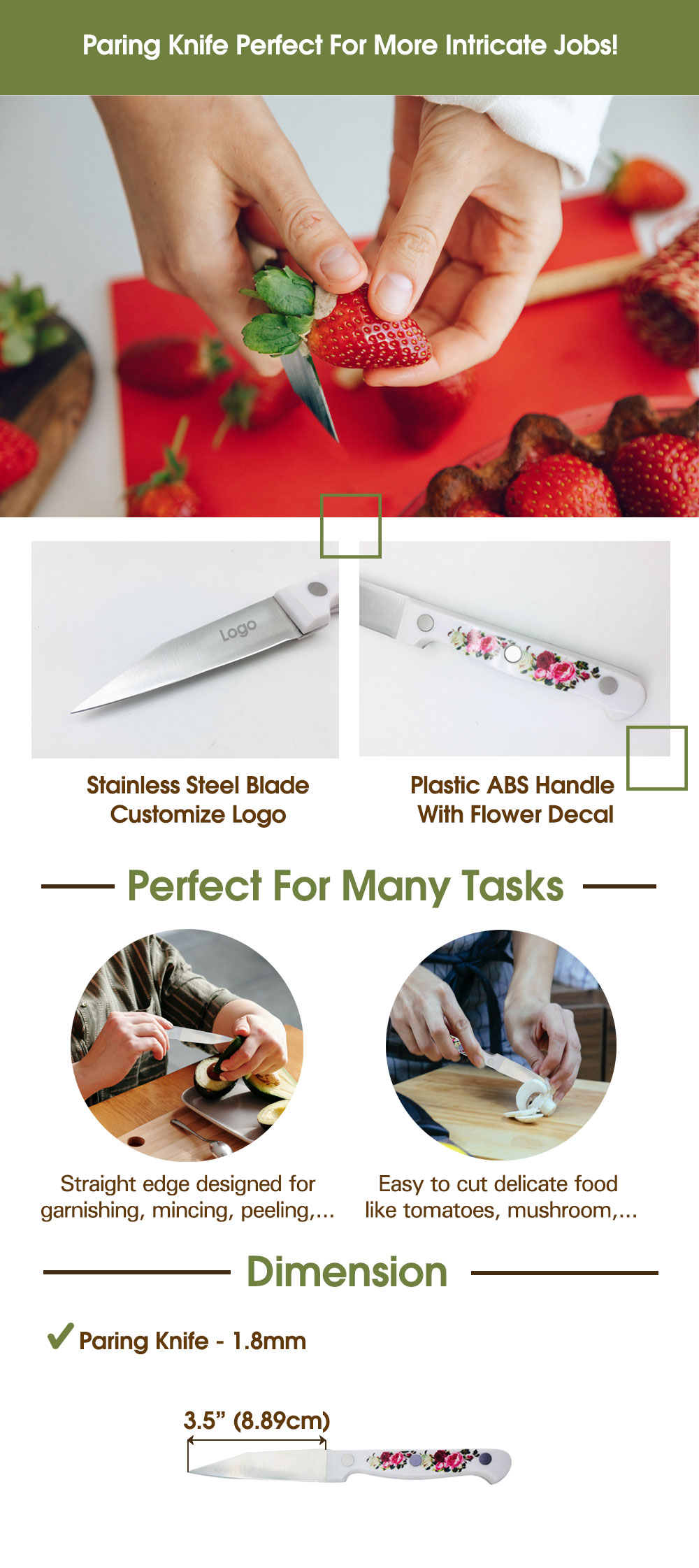 3,5-Zoll Küchenmesser aus Edelstahl mit floralem Griffdekal