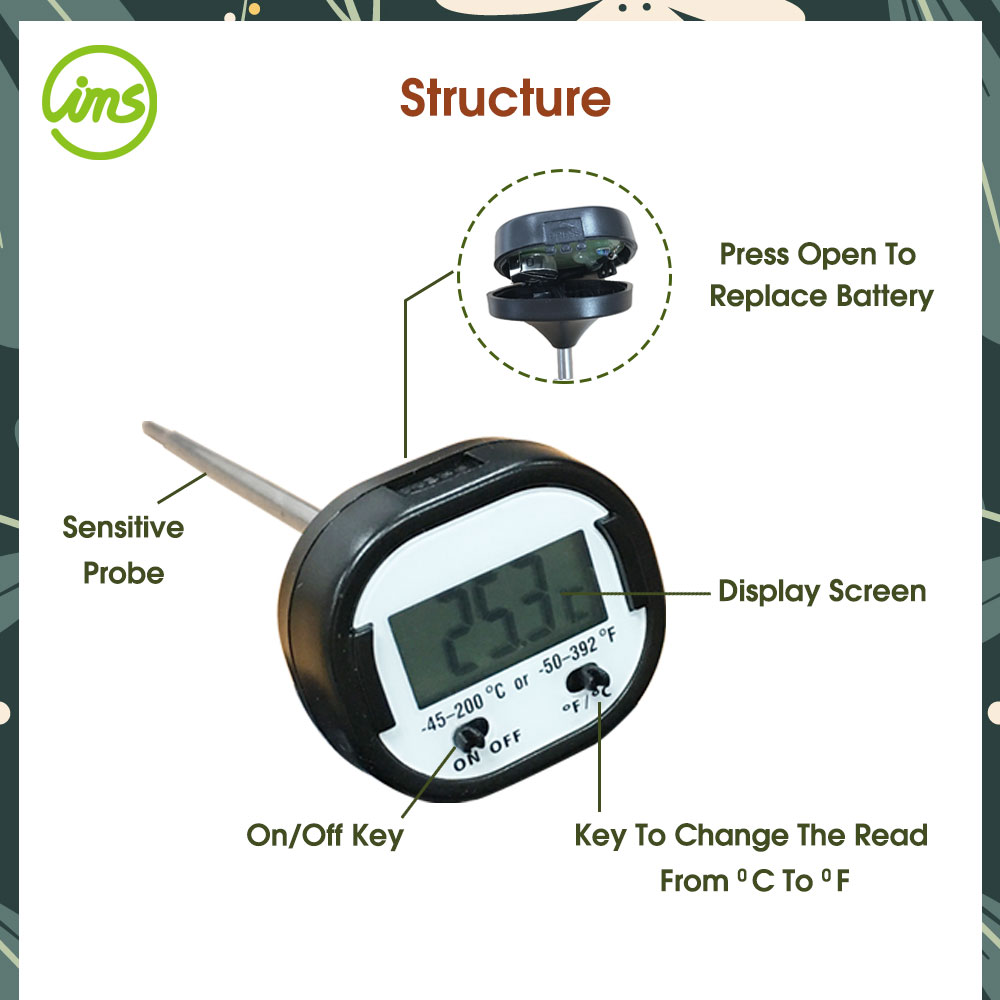 Digital Food Thermometer – Instant Read Stainless Steel Probe