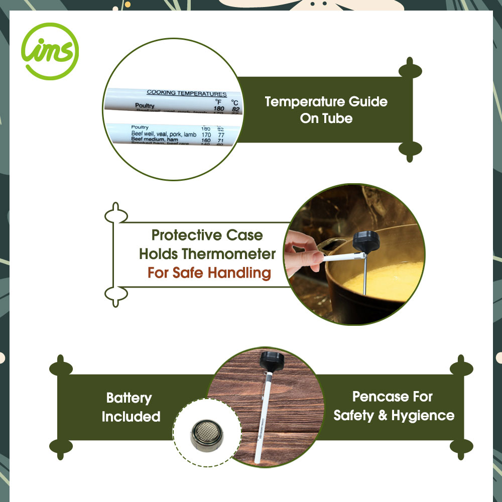 Perfect for checking meat doneness, frothing milk, tempering chocolate, baking desserts, or monitoring liquids like soups and sauces. A must-have kitchen tool for precise cooking and food safety.