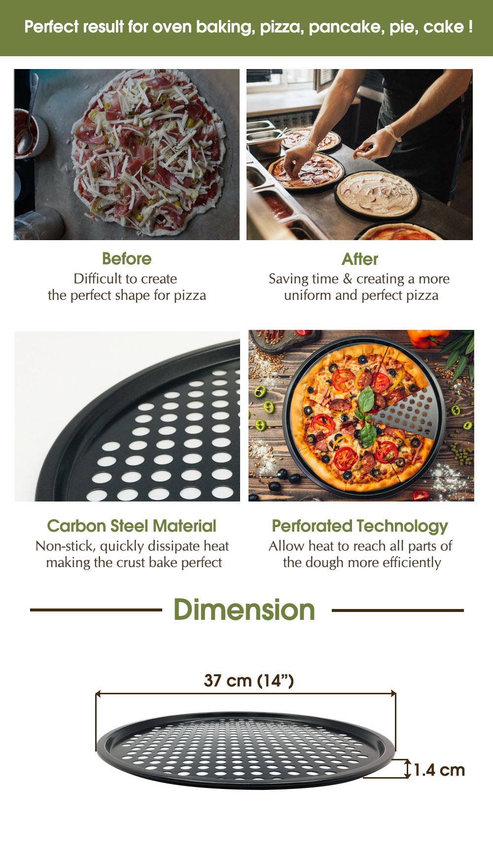 Molde para pizza de acero al carbono de 14" con agujeros fabricado en Taiwán