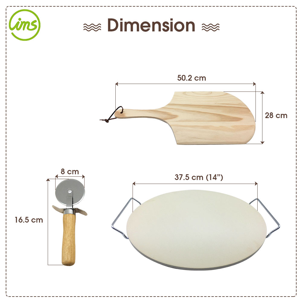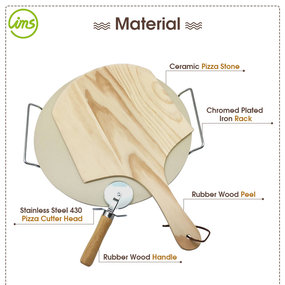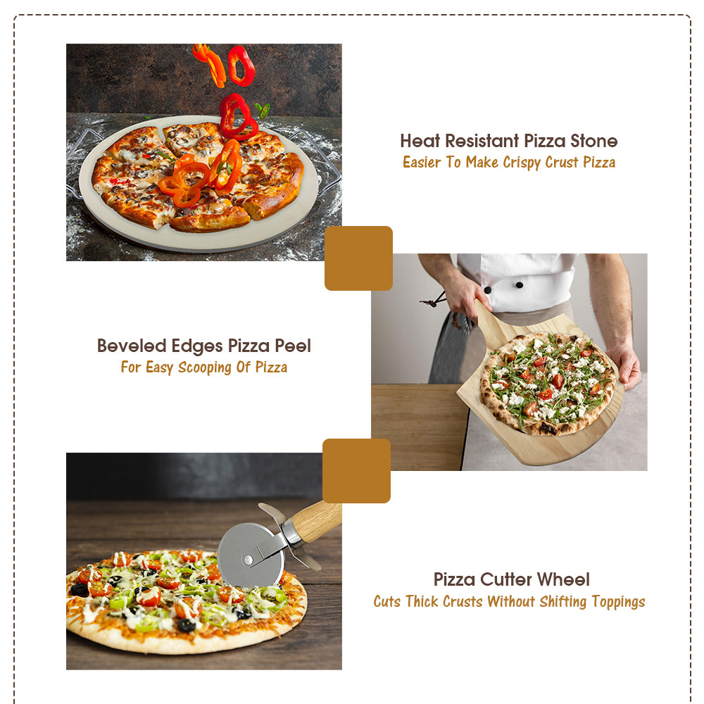 Piedra para pizza redonda con pala para pelar y cortador de pizza