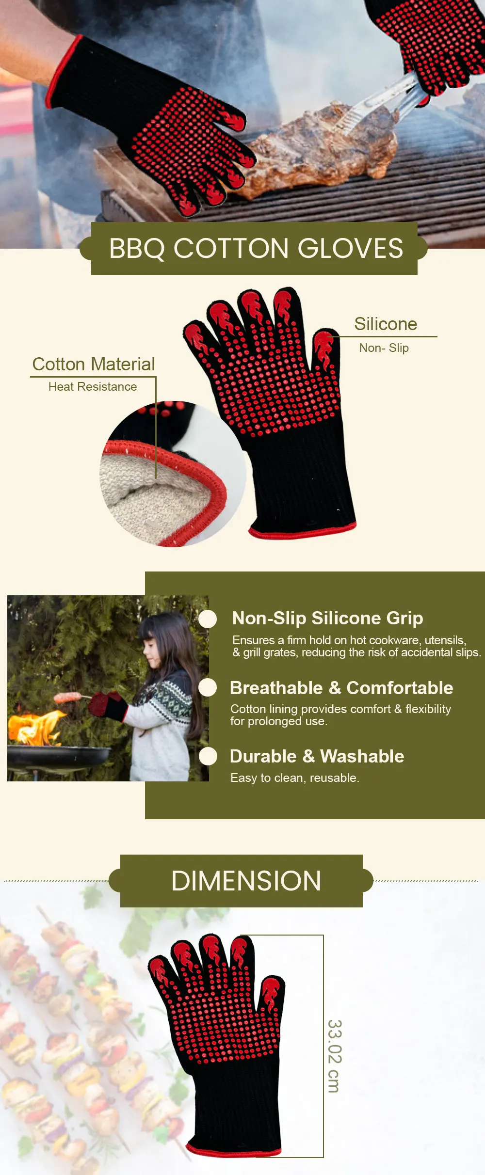 Heat Resistant Cotton Material: Provides reliable protection when handling hot grills, cookware, and barbecue tools.
