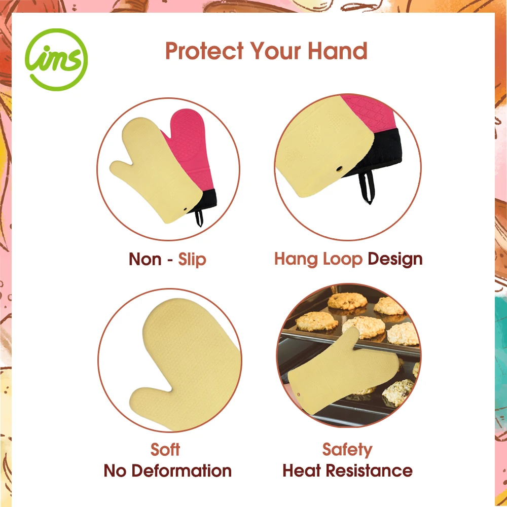 heat resistant silicone oven mitt with cotton lining – bbq & kitchen glove