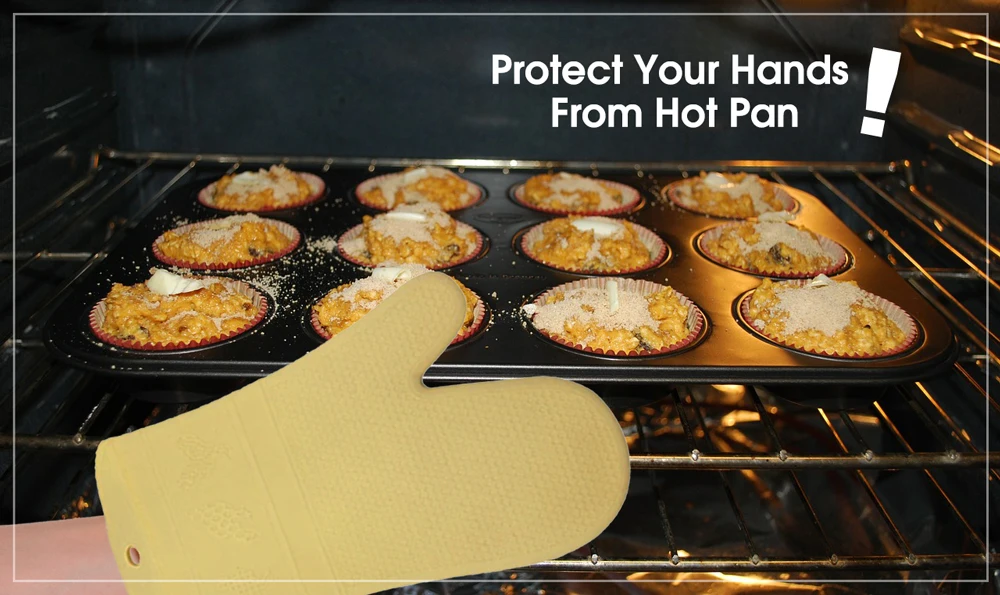 Premium silicone construction provides strong heat resistance, protecting hands when handling hot pans, baking trays, and barbecue tools.