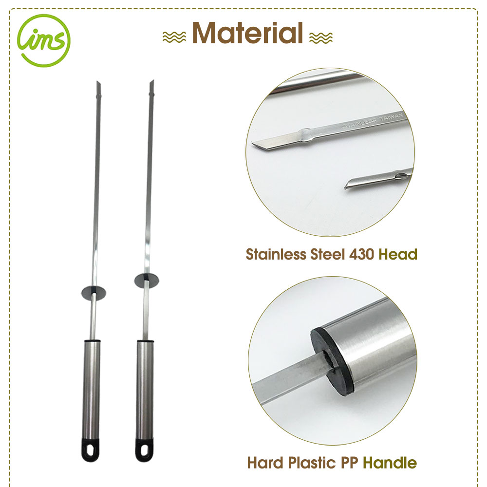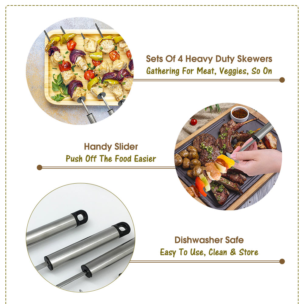 Juego de brochetas para barbacoa de acero inoxidable.