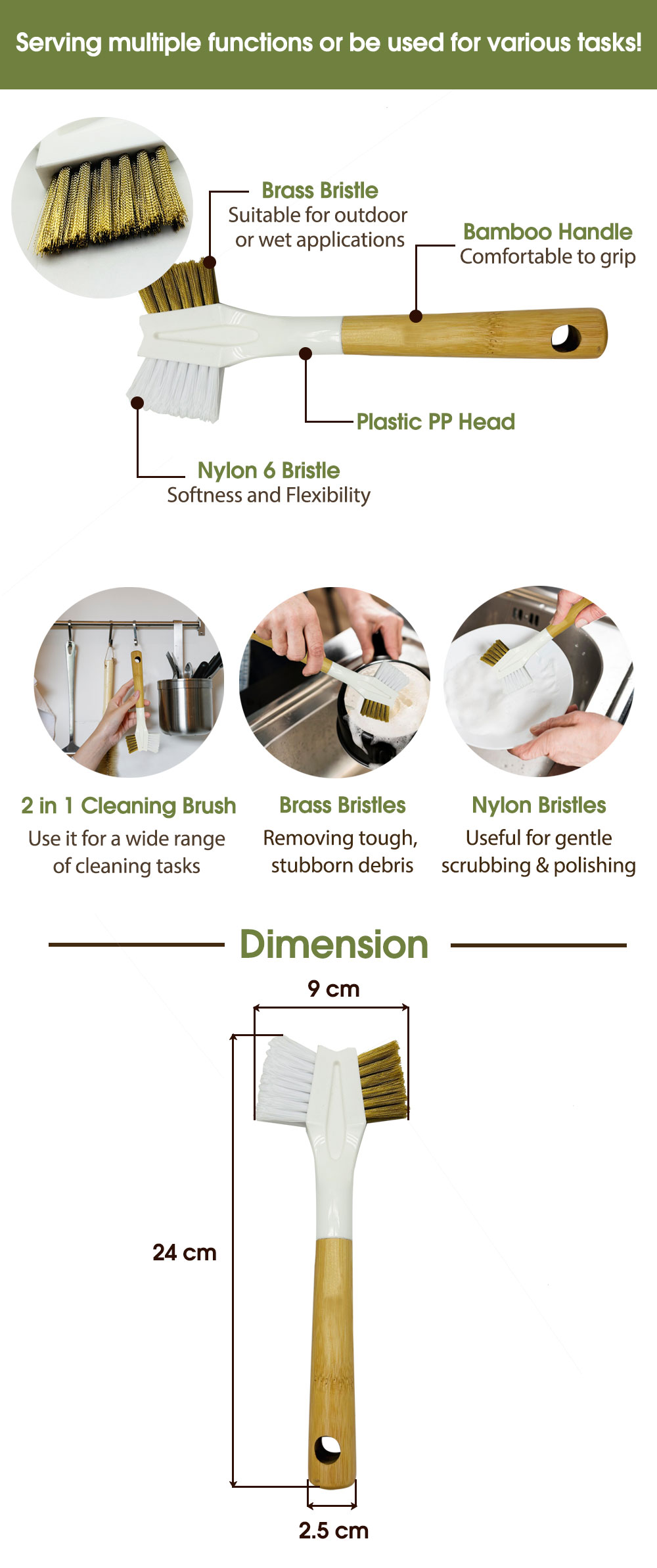 Eliminación de manchas difíciles: las cerdas de latón son más rígidas y abrasivas, lo que las hace eficaces para eliminar manchas difíciles, suciedad y óxido que pueden ser resistentes a las cerdas más suaves.