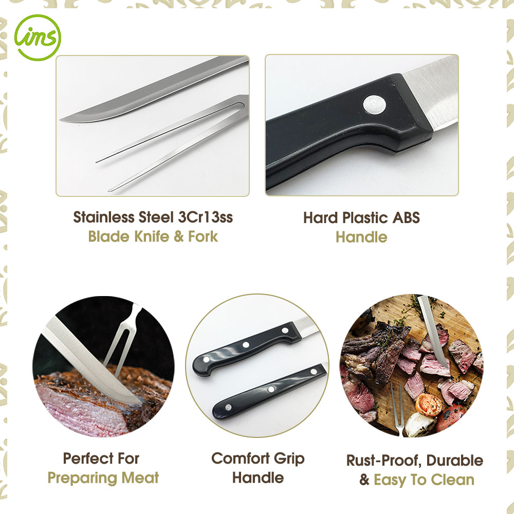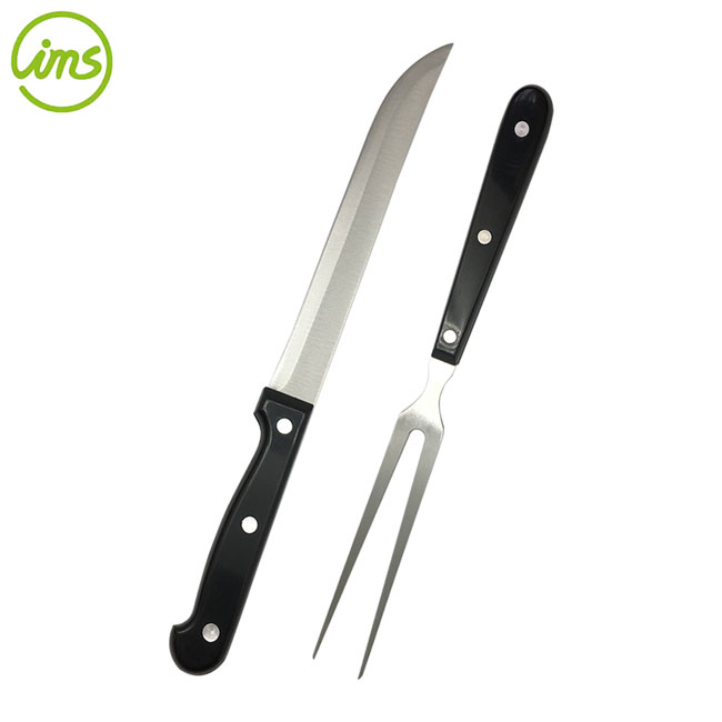 Juego de tenedor y cuchillo para trinchar carne de acero inoxidable.