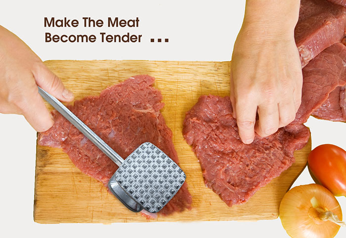 Un martillo para carne de aluminio se puede usar en una variedad de carnes, como carne de res, cerdo, pollo y ternera, lo que lo convierte en una herramienta versátil en la cocina.