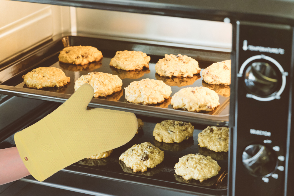 Non-slip textured surface for a secure grip on pots, pans, and baking trays