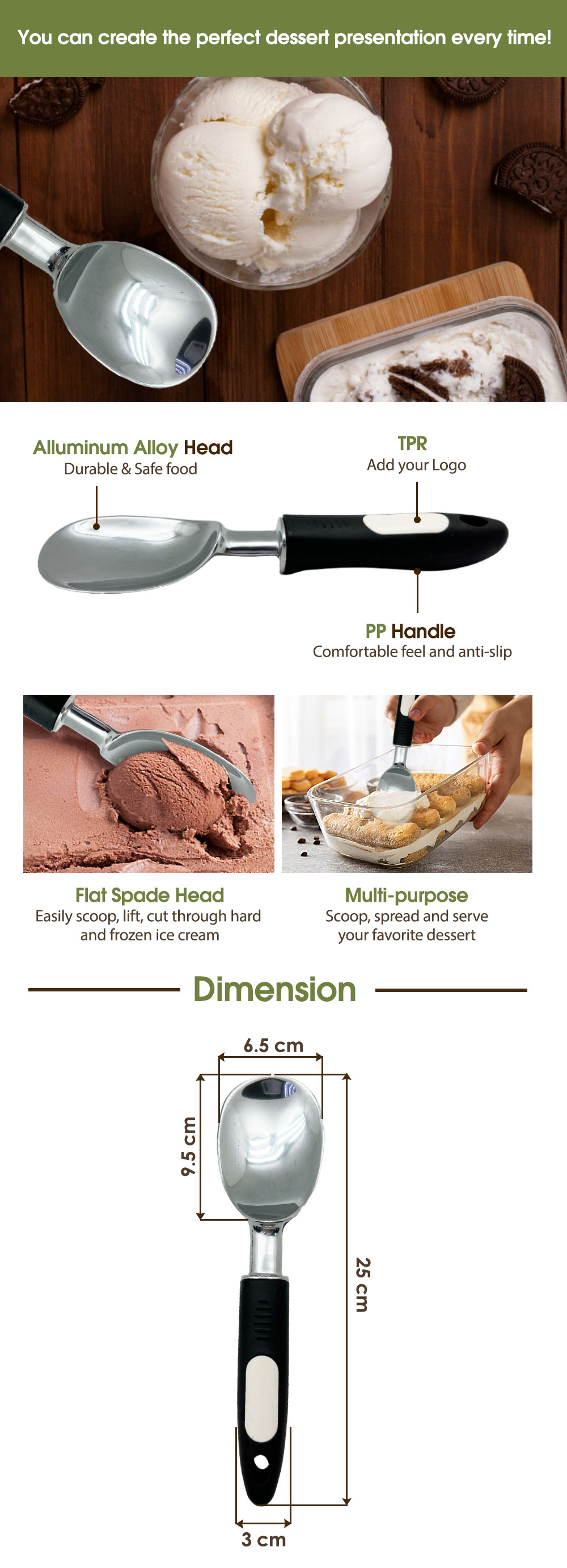 Aluminum Alloy Head: Food-safe, corrosion-resistant, and designed to withstand hard, frozen ice cream.