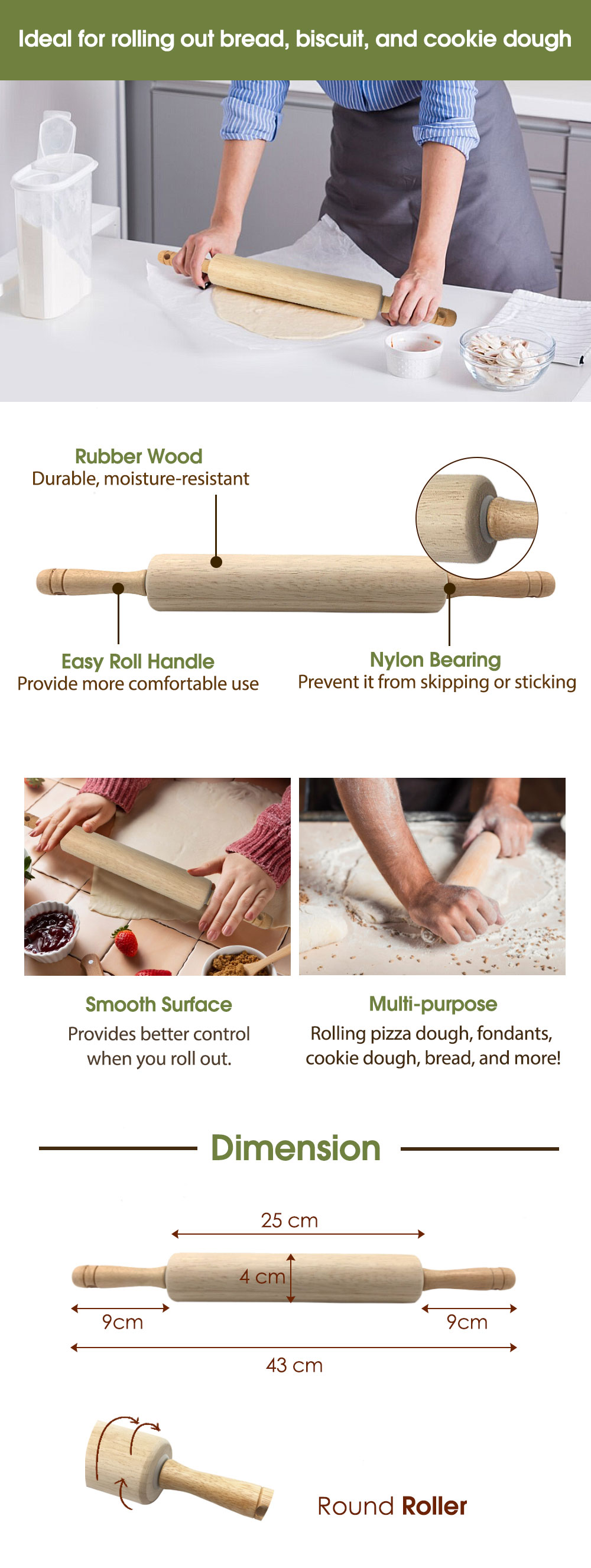 Perfect for everyday baking and cooking, this rolling pin is ideal for flattening cookie dough, pizza bases, pie crusts, fondants, dumpling wrappers, and artisan bread. It’s designed to handle both light pastry work and heavier dough with ease.