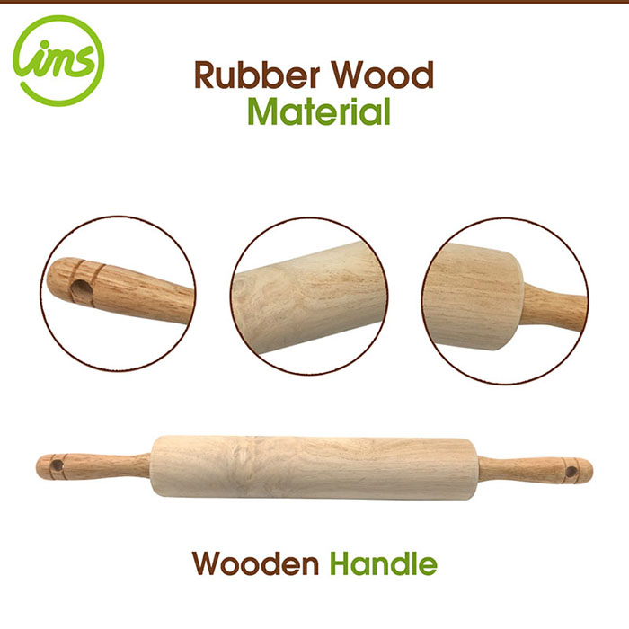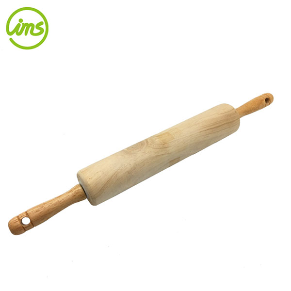 Rubber Wood Rolling Pin with Handle – 43cm Durable Dough Roller for Baking