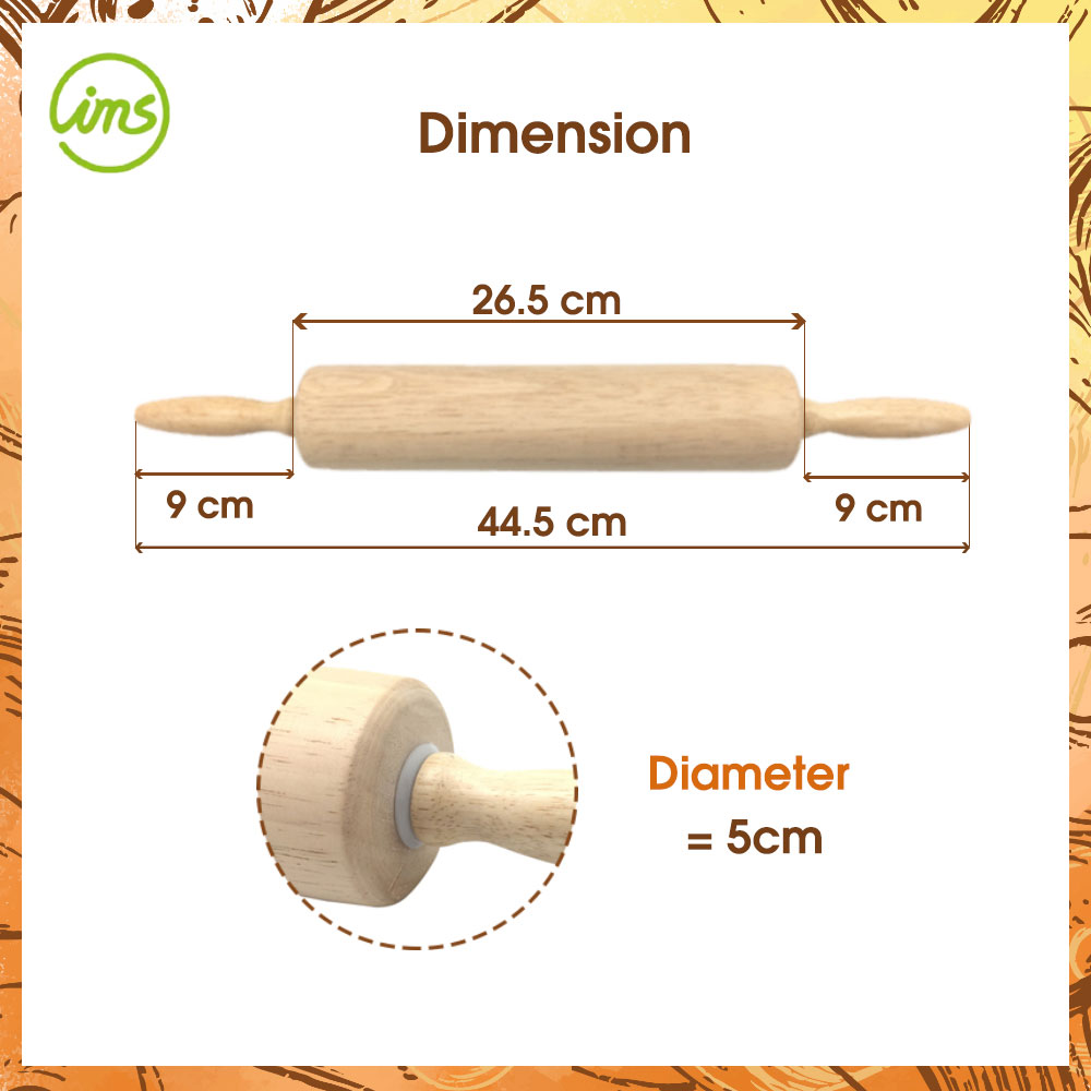 Durable Rubber Wood Rolling Pin – Non-Stick Wooden Dough Roller 44.5x5cm