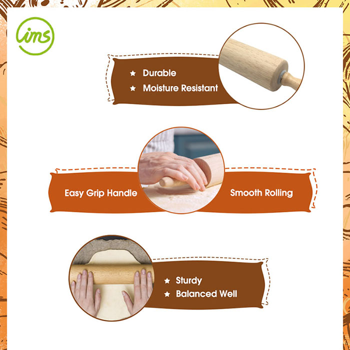 This premium Rubber Wood Rolling Pin is the perfect tool for home bakers and professionals alike. Crafted from moisture-resistant rubber wood, it ensures smooth rolling and long-lasting durability. Its ergonomic handles make it easy to grip, allowing you to roll dough with comfort and precision.