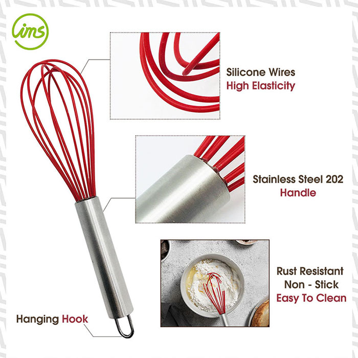 Material: Food-grade silicone wires, stainless steel 202 handle