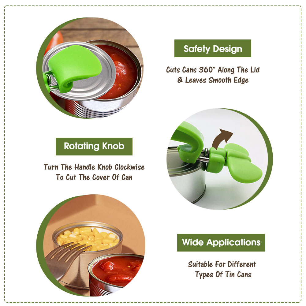 Ideal for opening canned vegetables, soups, sauces, pet food, and more. Its compact palm design makes it especially useful for small kitchens, camping, and travel. Safe for seniors and families, thanks to its smooth-edge safety system.