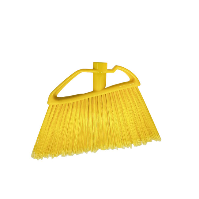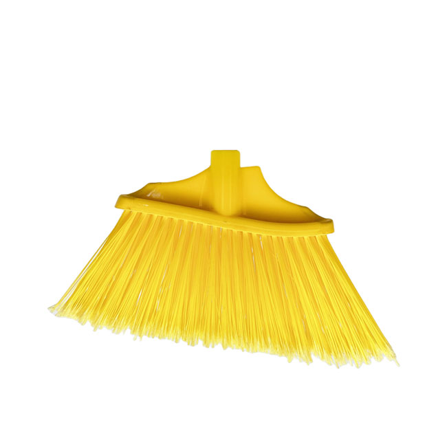 Angled broom head for improved access to edges, corners, and narrow spaces