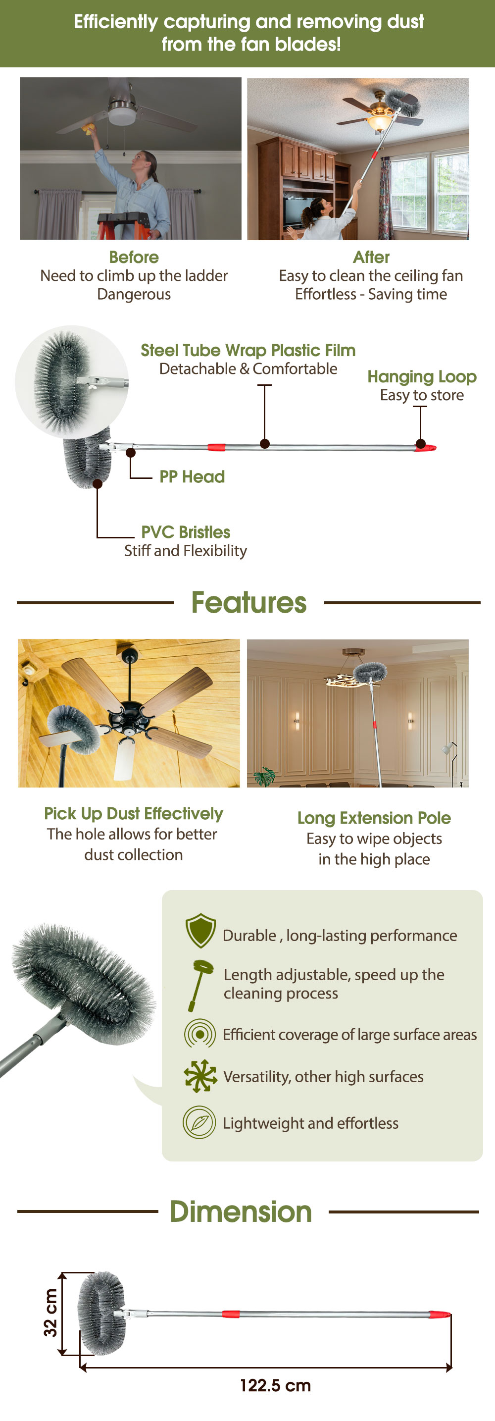Made in Malaysia Adjustable Ceiling Fan Brush with Extension Pole – Long Handle Dust Cleaner