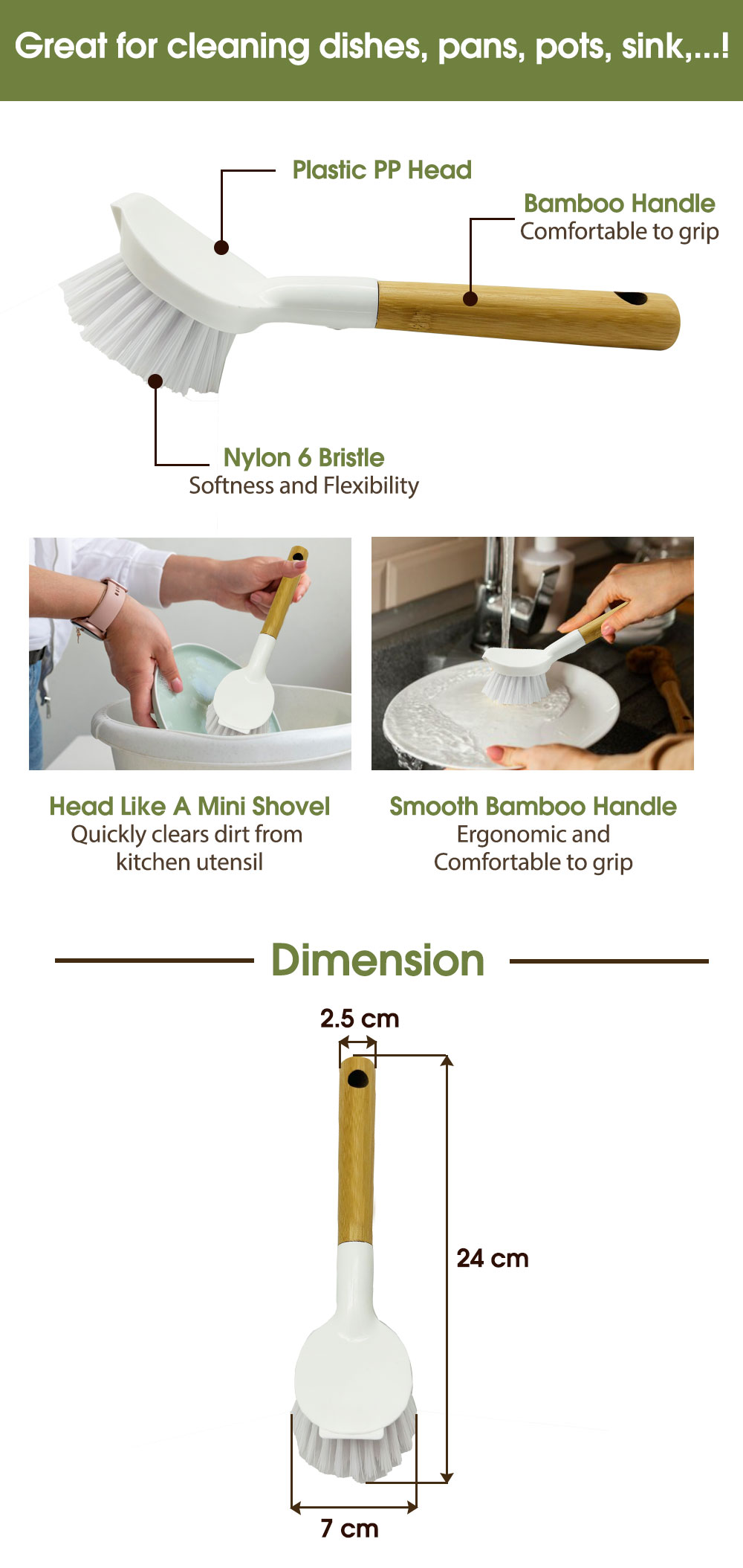 Nylon Dish Pot Brush Scrubber with Bamboo Handle – PP Head, Nylon 6 Bristles