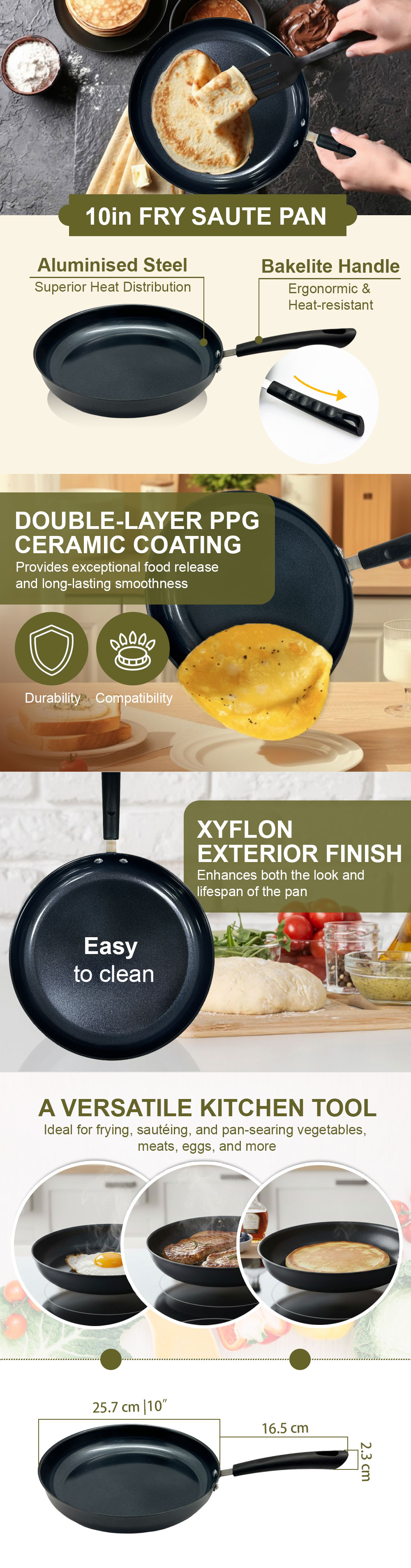 10-Inch Non-Stick Fry & Sauté Pan | Aluminised Steel with Ceramic Coating