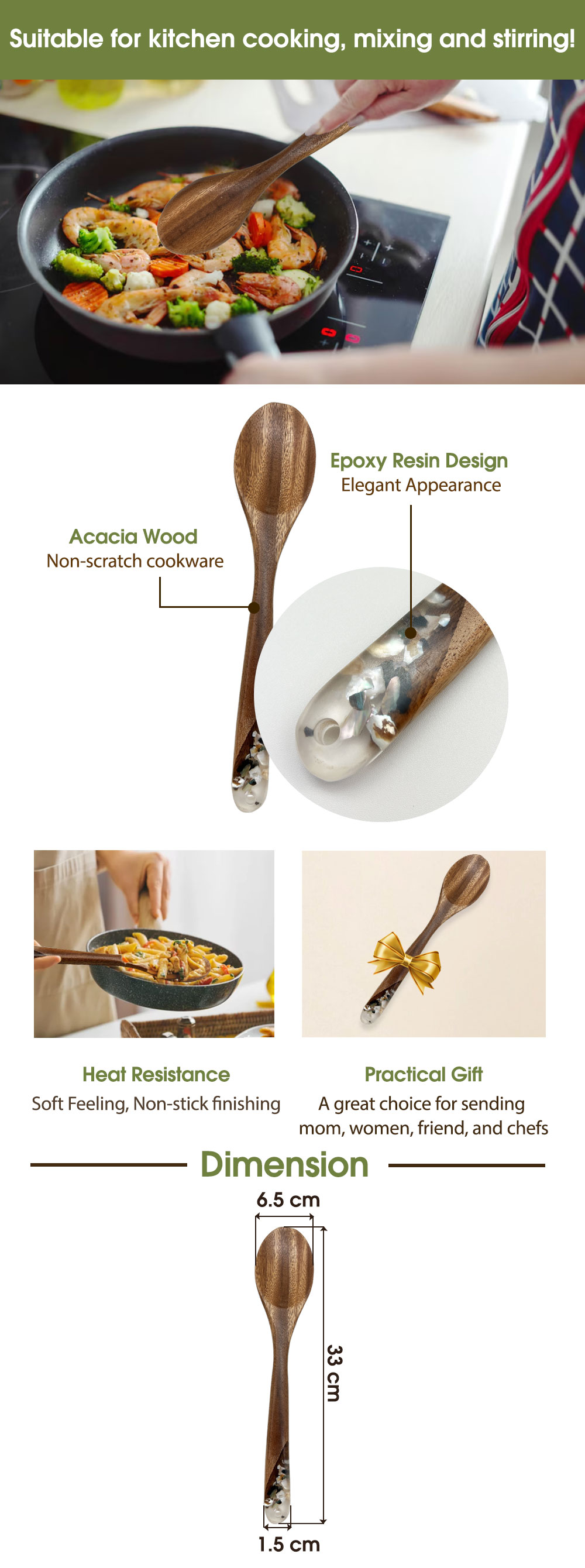 Epoxy Resin Acacia Wooden Solid Spoon – Non-Scratch Cooking Utensil