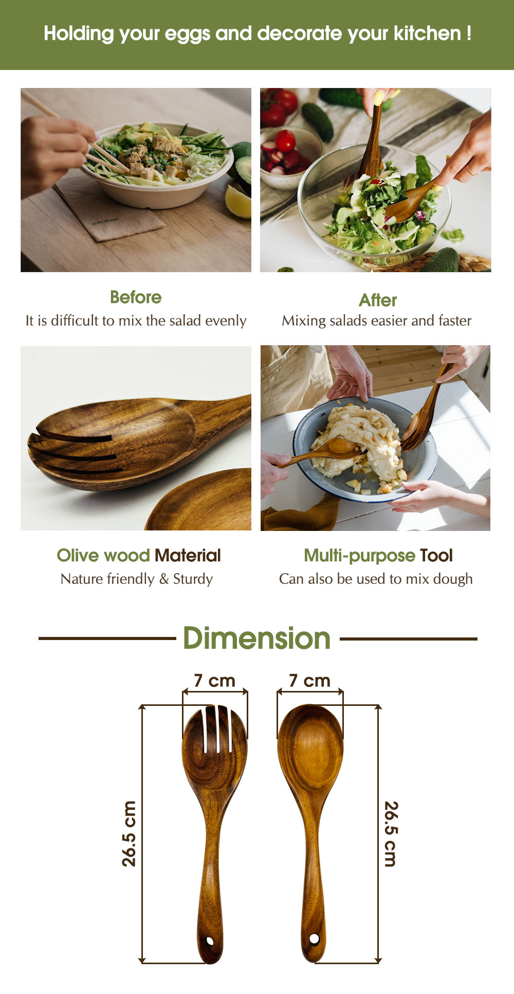 Olive Wood Salad Spoon & Fork Set – Natural Wooden Kitchen Utensils